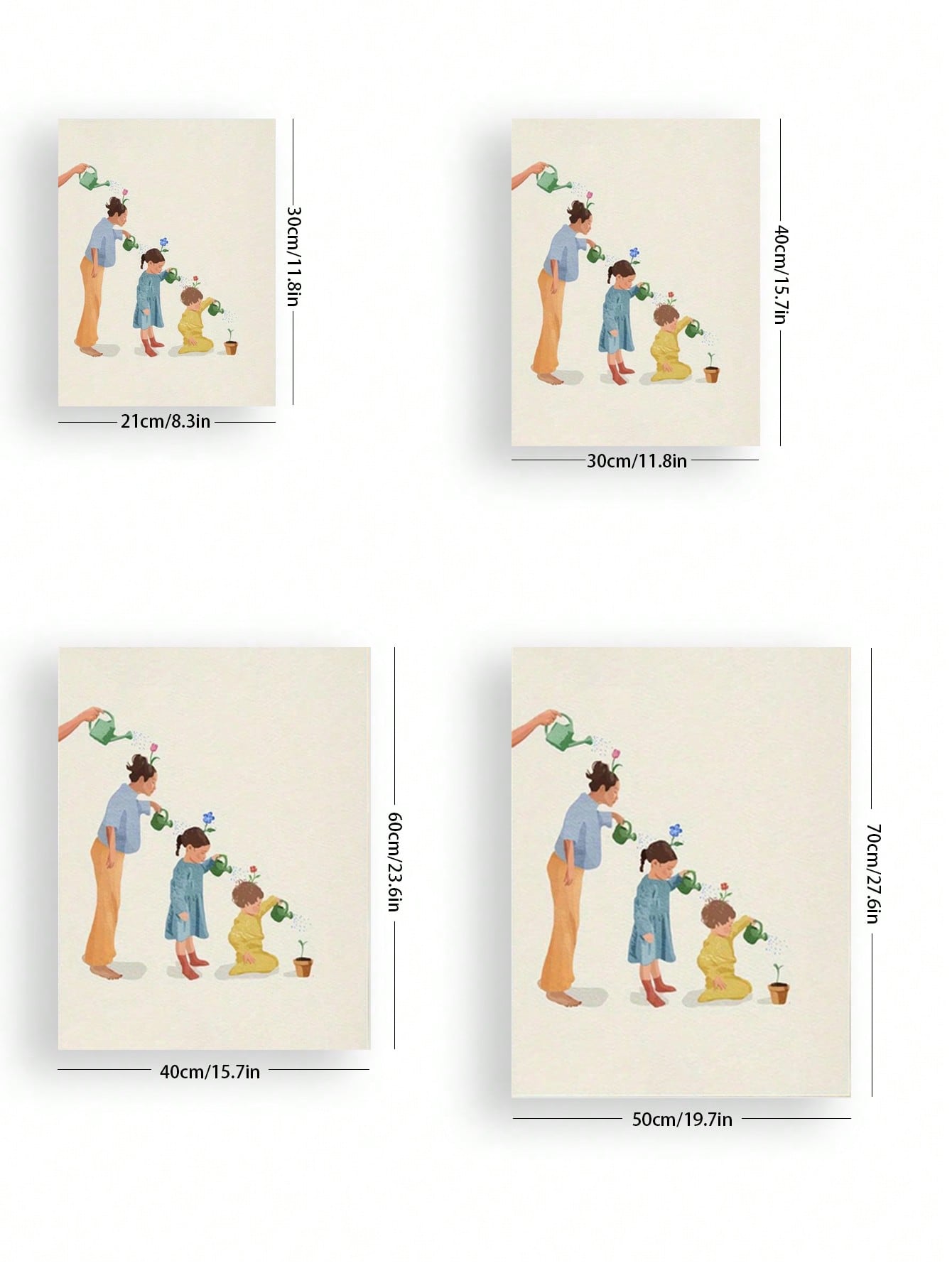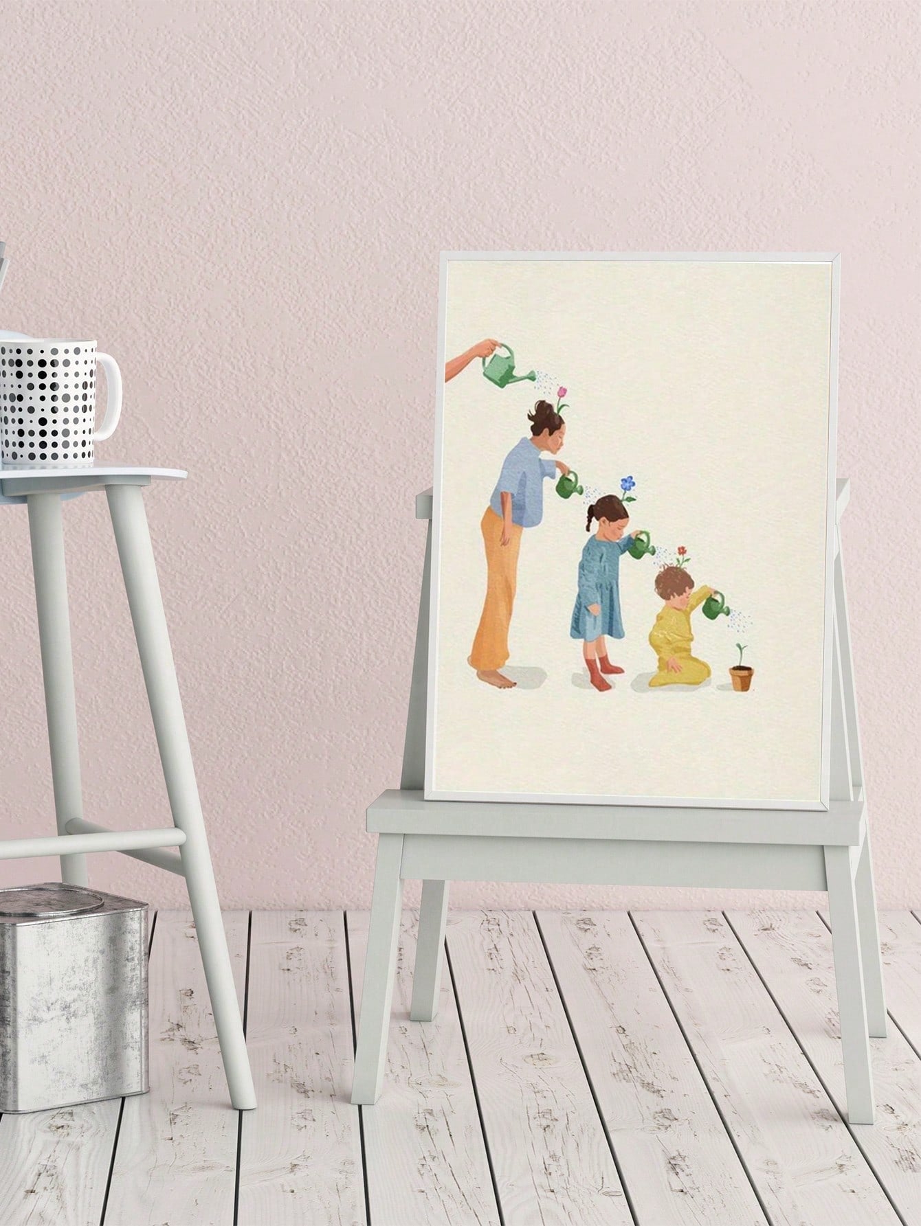 Together We Bloom: Minimalist Cartoon Canvas Wall Art