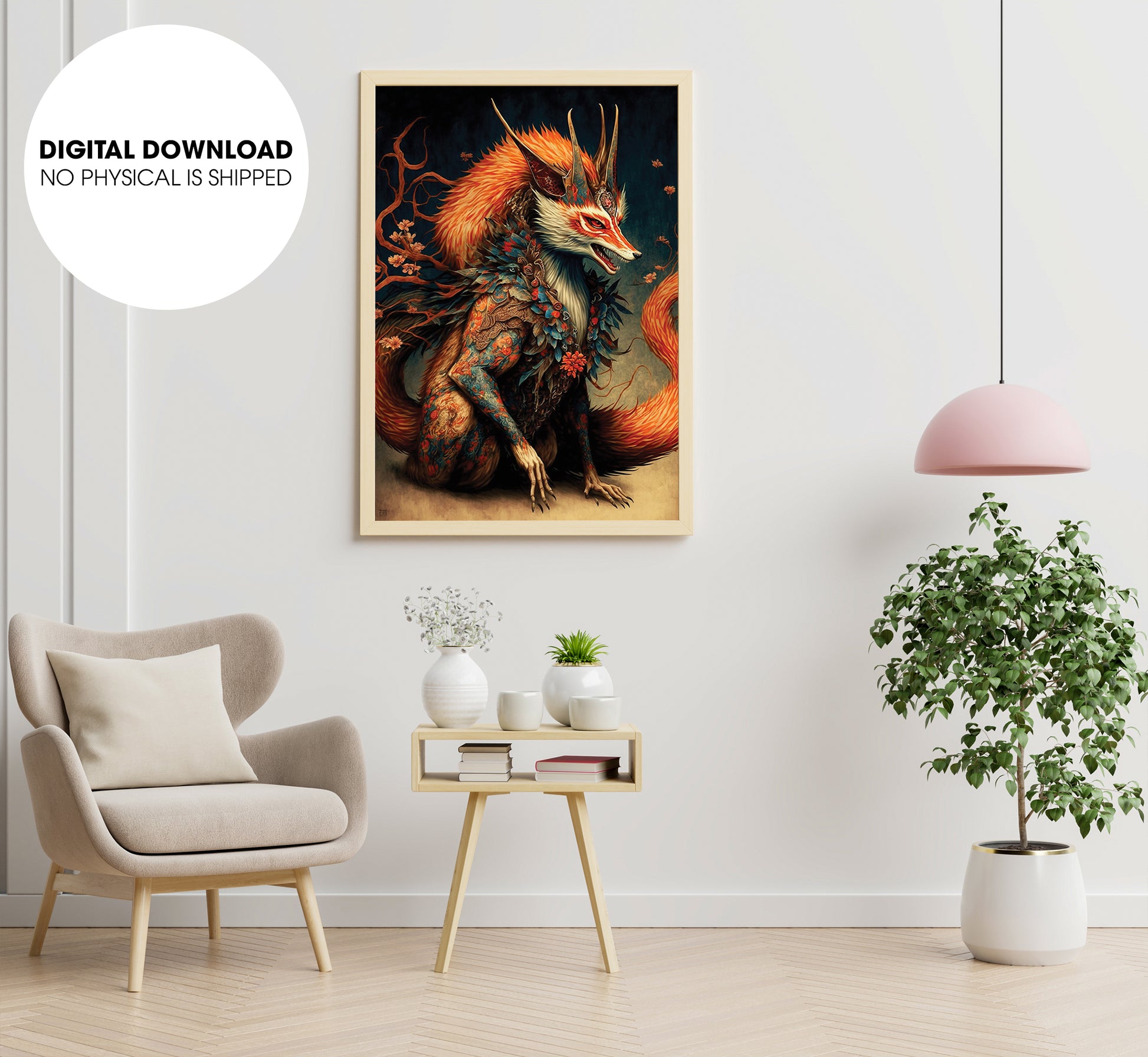 Traditional Japanese Demon Fox, Japanese Fox, Love Fox For My Live, Poster Design, Printable Art
