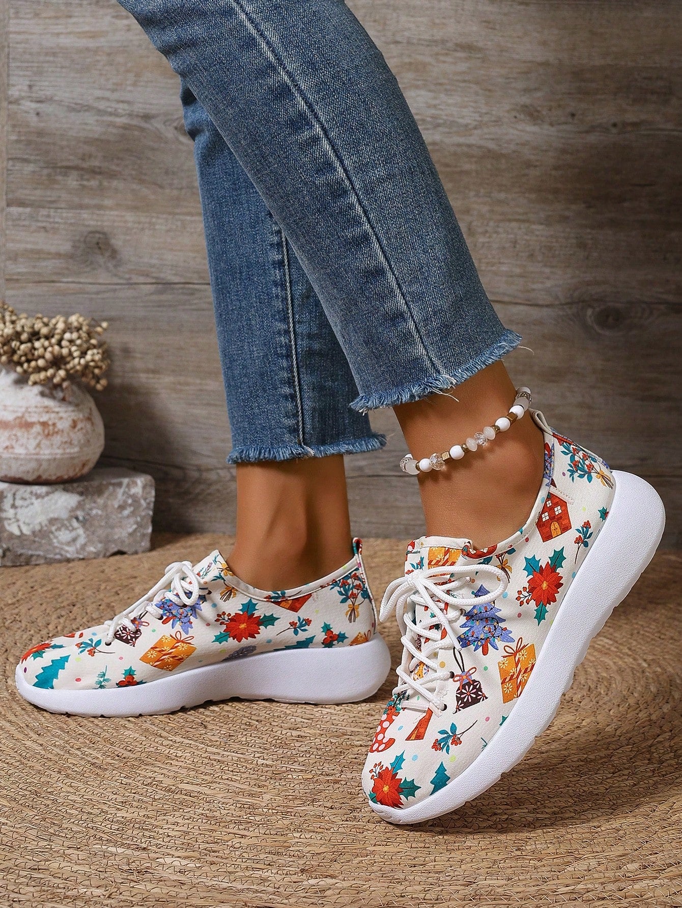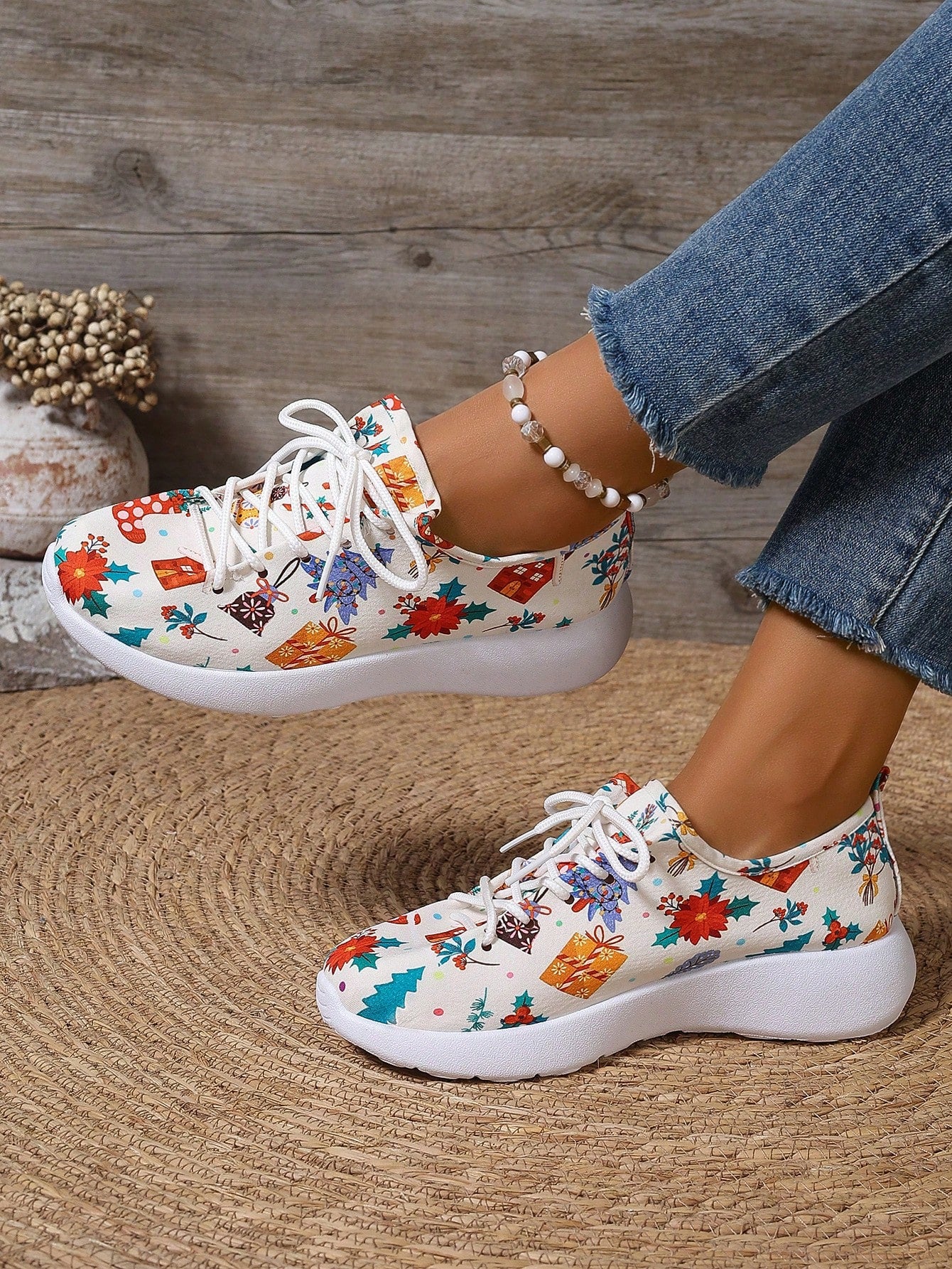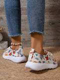 Trendy Country Vibes: New Floral Print Thick Sole Canvas Sneakers