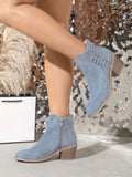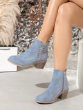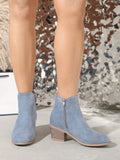 Trendy Light Blue Chunky Heeled Ankle Boots - Perfect for Summer Vacations & Festive Celebrations!