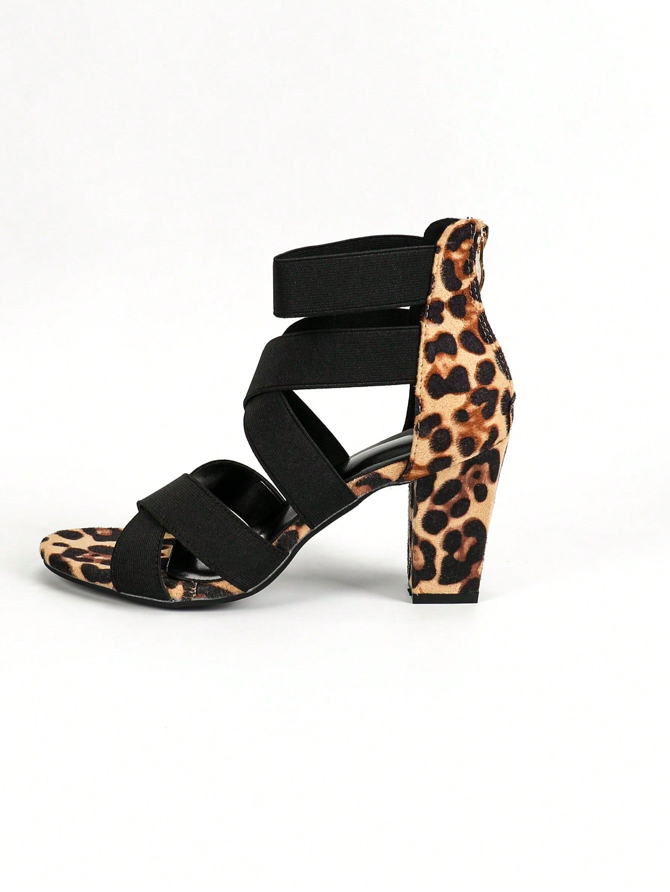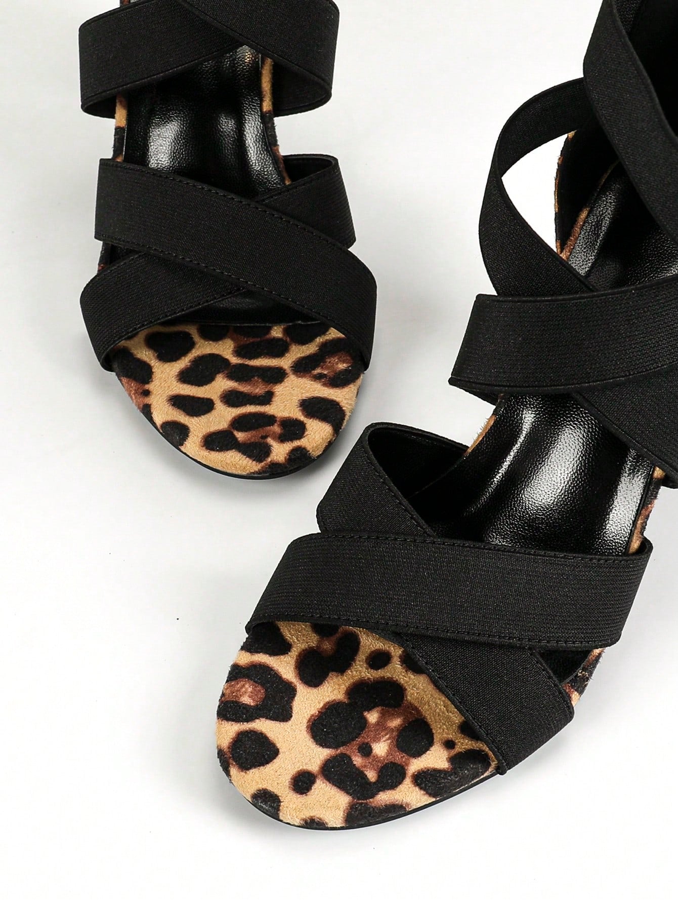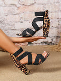 Trendy Multicolor Leopard Print Criss-Cross Gladiator Sandals with Chunky Heels for Women
