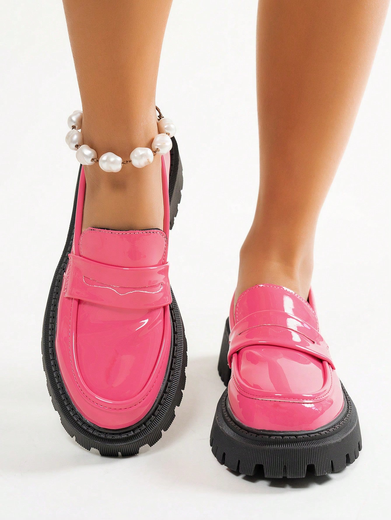 Trendy Pink Chunky Platform Loafers - Korean Style Casual Slip-Ons for Effortless Chic