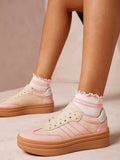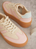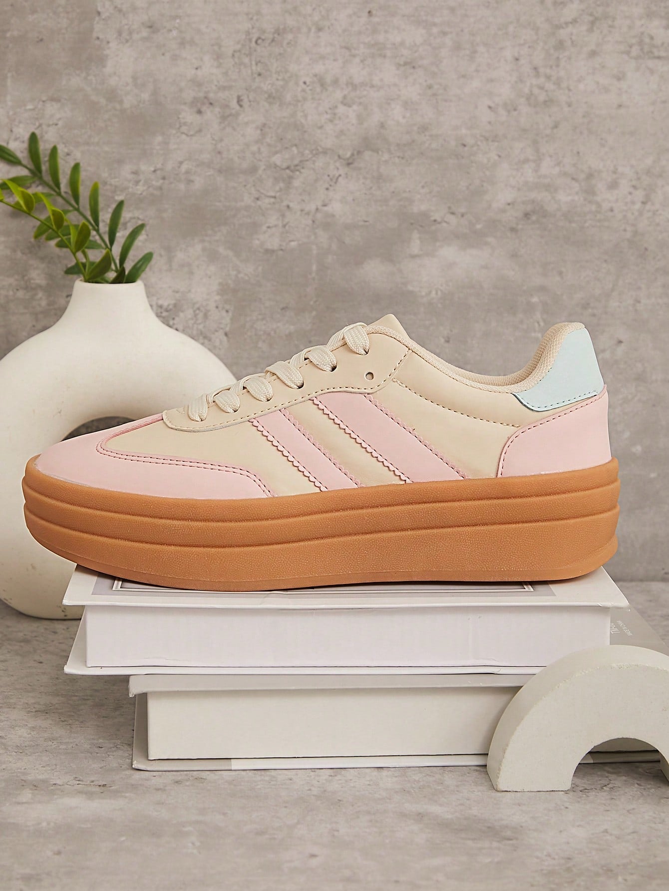Trendy Pink & Yellow Striped Flatform Sneakers - Bold Streetwear Style for Fall & Winter!