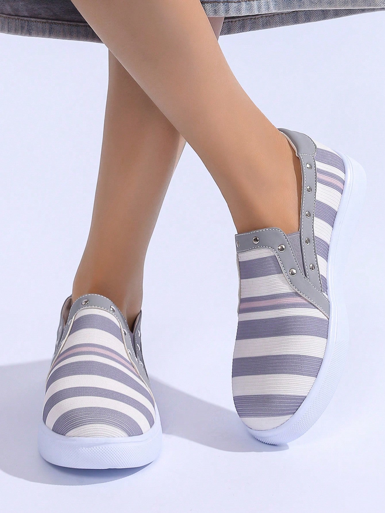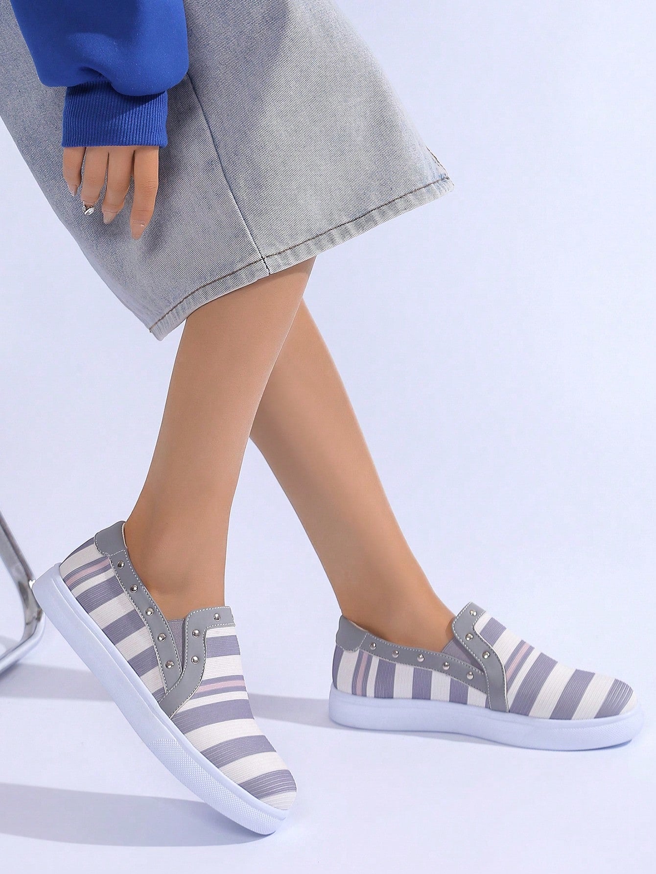 Trendy Women's Multi-Color Stripe Pattern Flats - Versatile All-Season Sneakers for Every Outfit