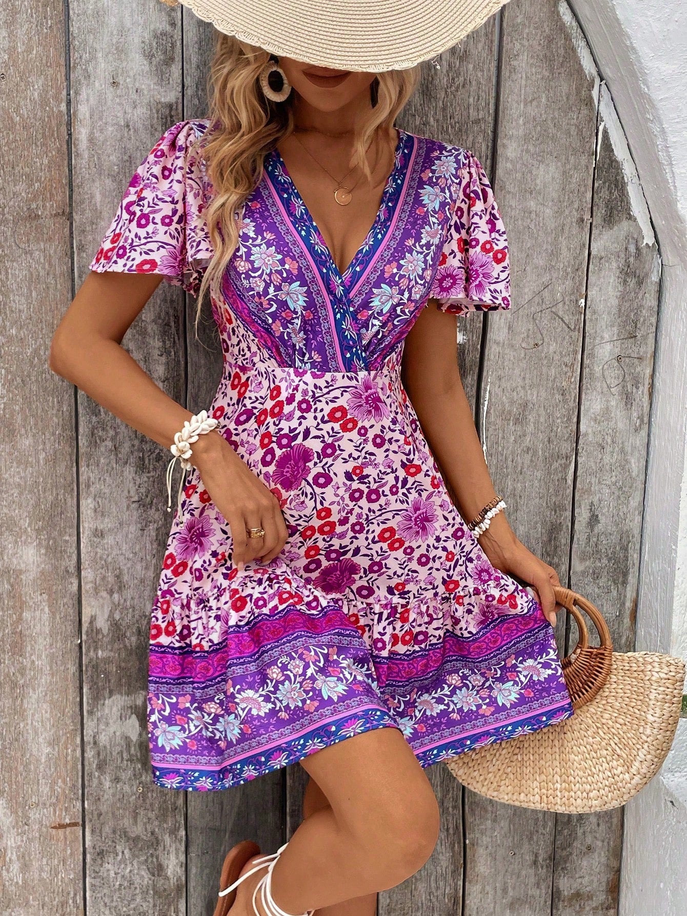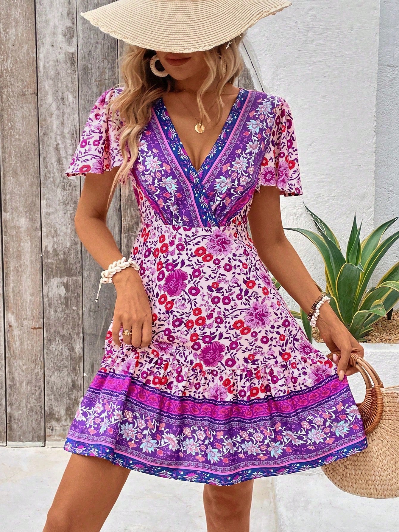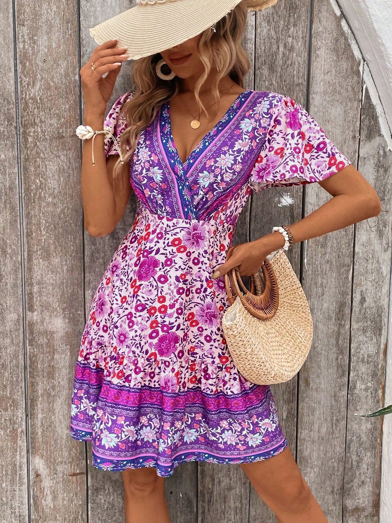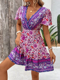 Tropical Temptation: Women's V-Neck Full Print Cross Wrap Dress