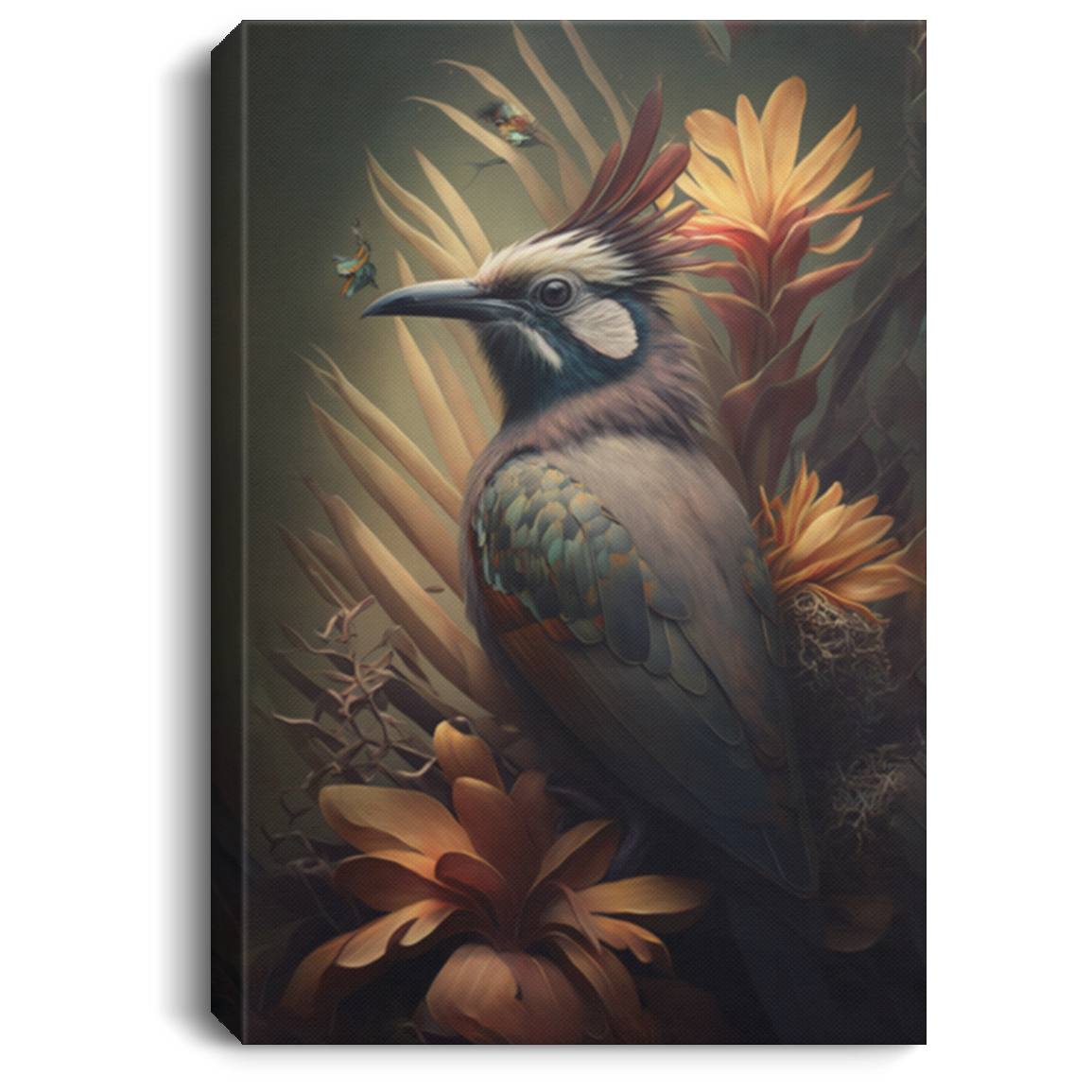 Ultra Realistic Bird Of Paradise Portrait, Surrounded By Dried Flowers, Gloomy Bird Canvas