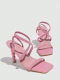 Unique Heel Design Leather High Heel Sandals - Step into Summer in Style!