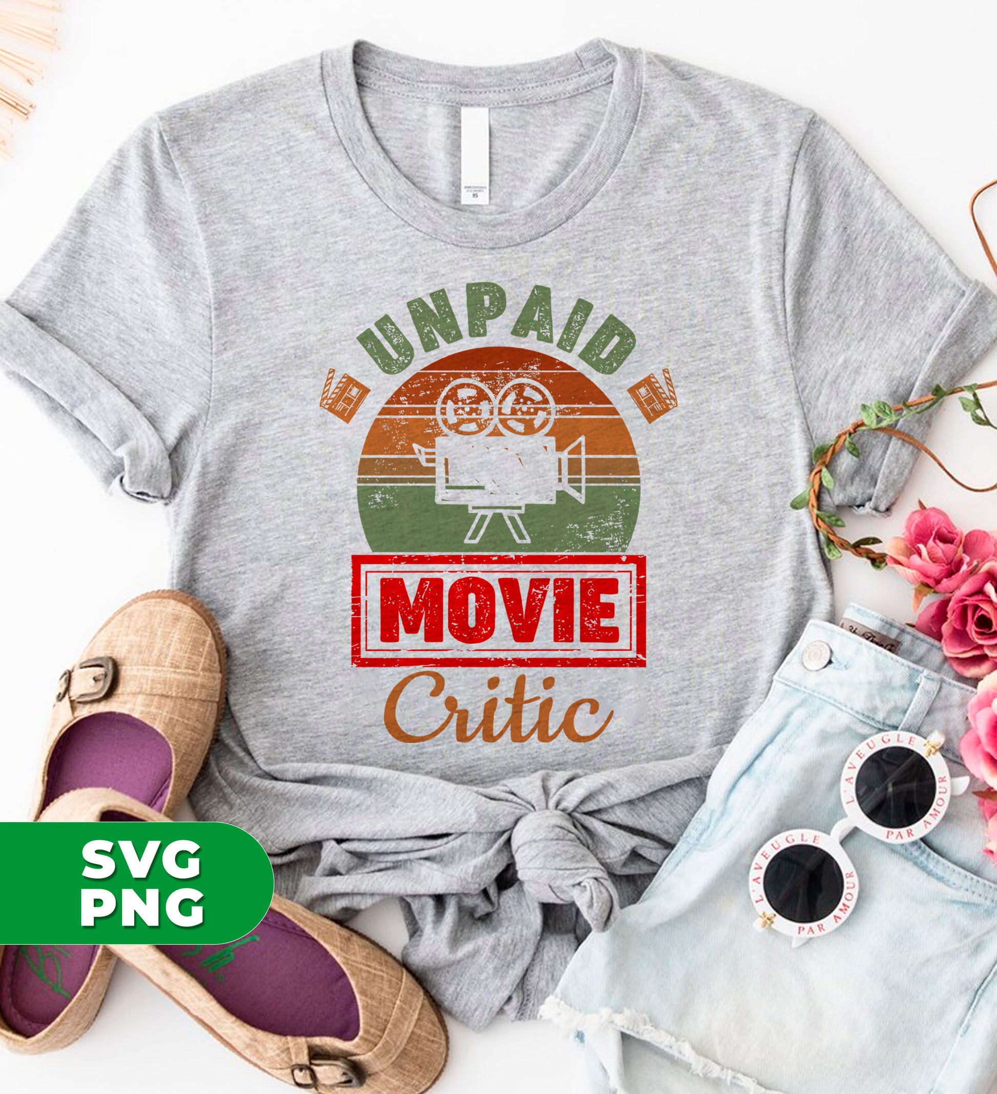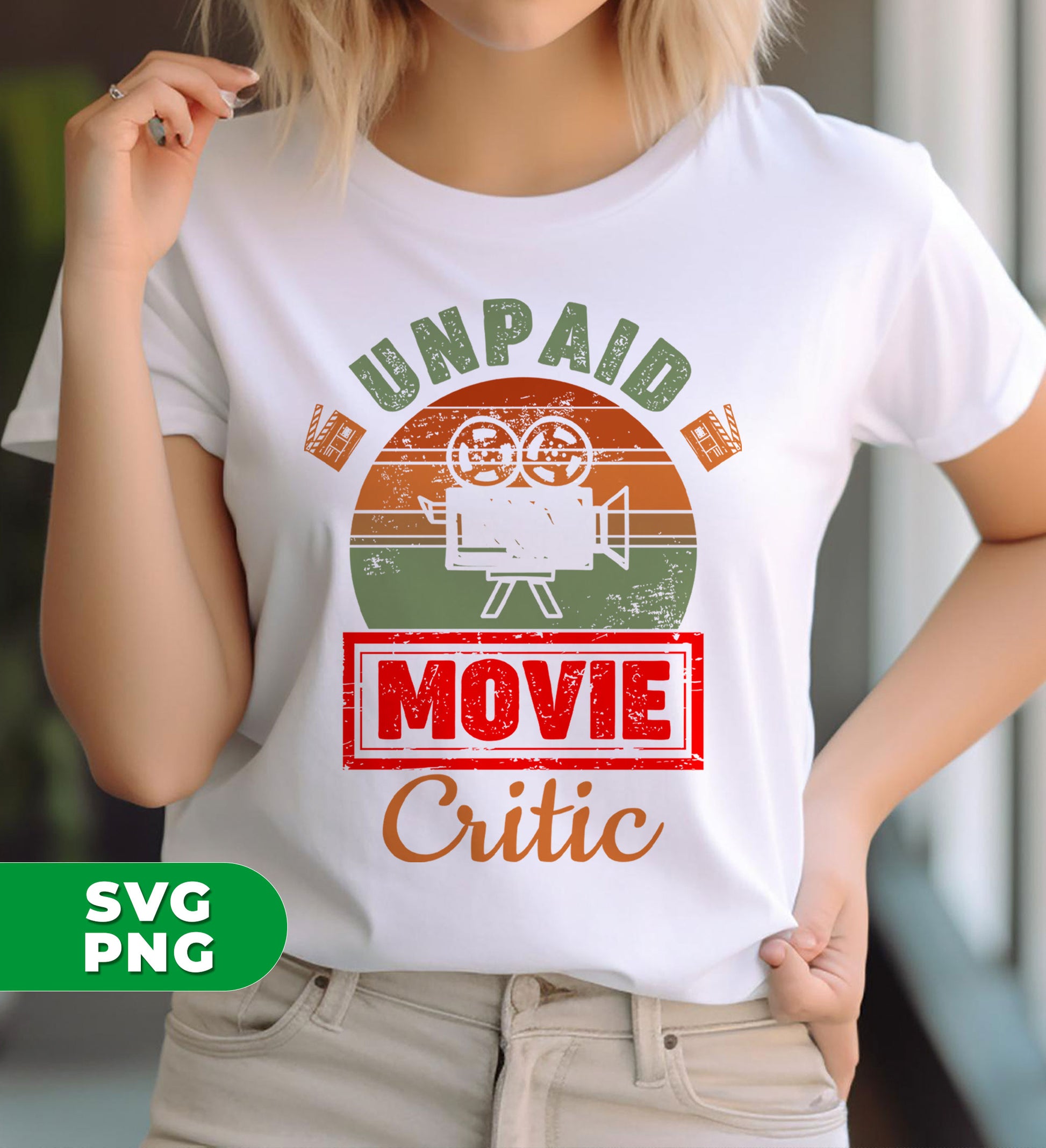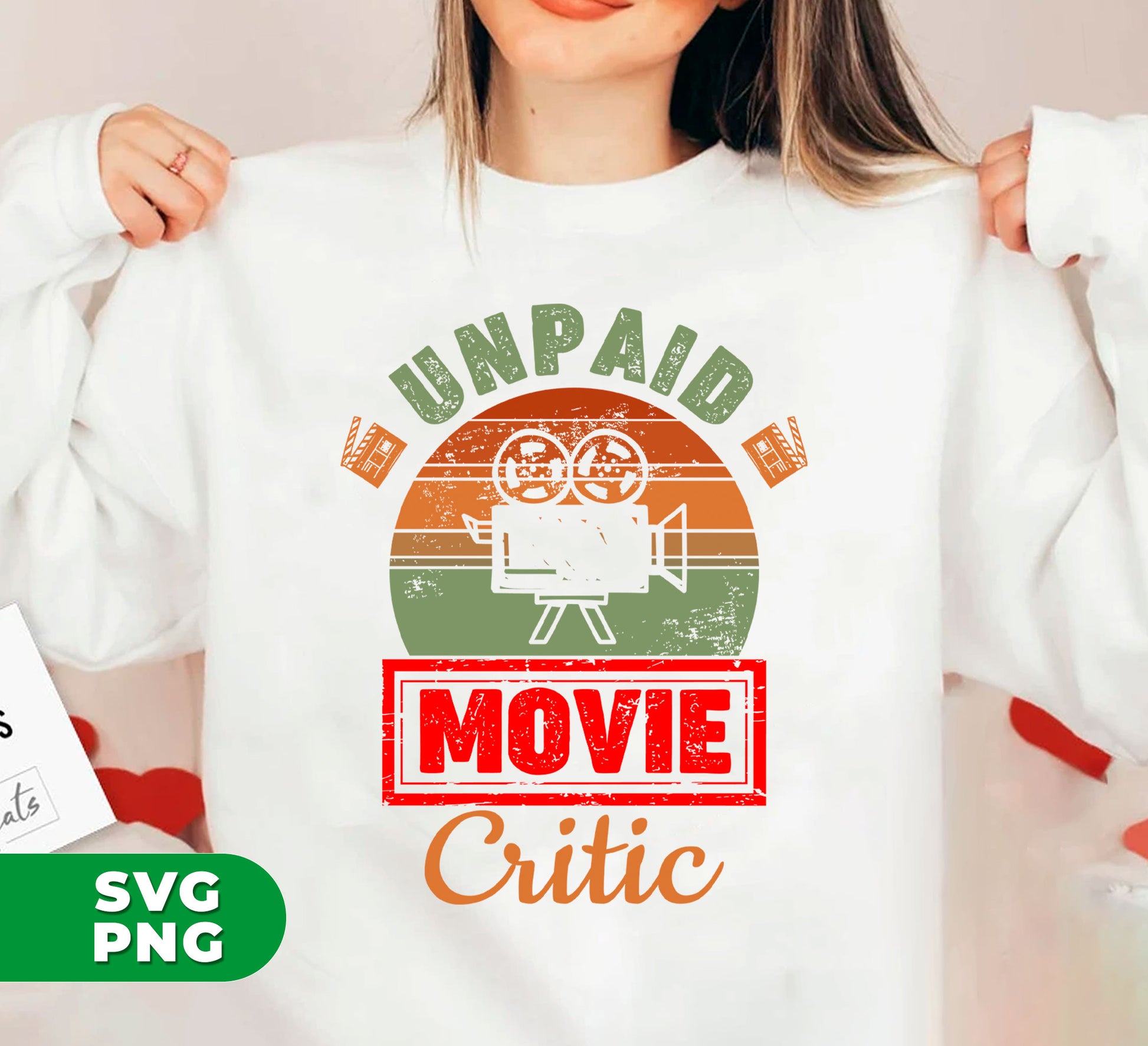 Unpaid Movie Critic, Retro Movie, Camera Silhouette, Digital Files, Png Sublimation