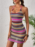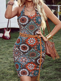 Vacation Chic: Print Tie Backless Halter Bodycon Dress