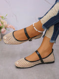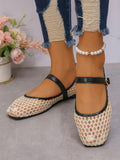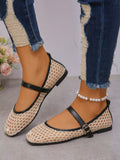 Versatile Beige Grid Mary Jane Flats - Stylish & Comfortable Summer Essentials
