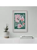 Vibrant Floral Wall Art Set - Modern Pink and Green Prints for Stylish Home Decor