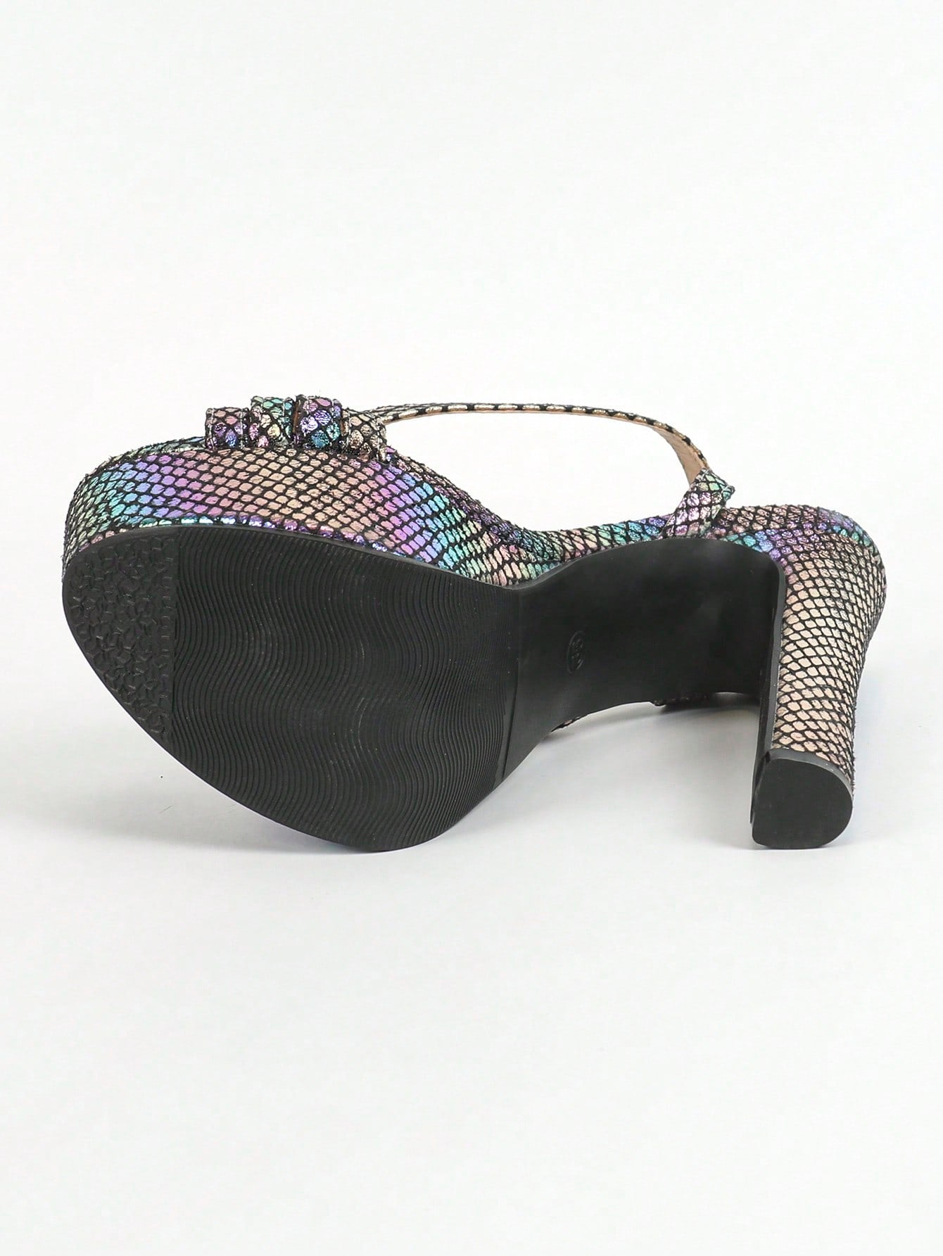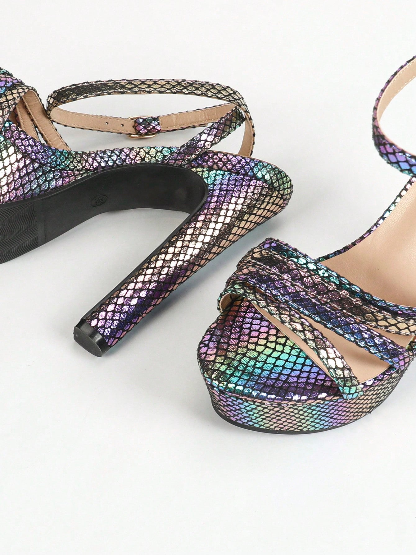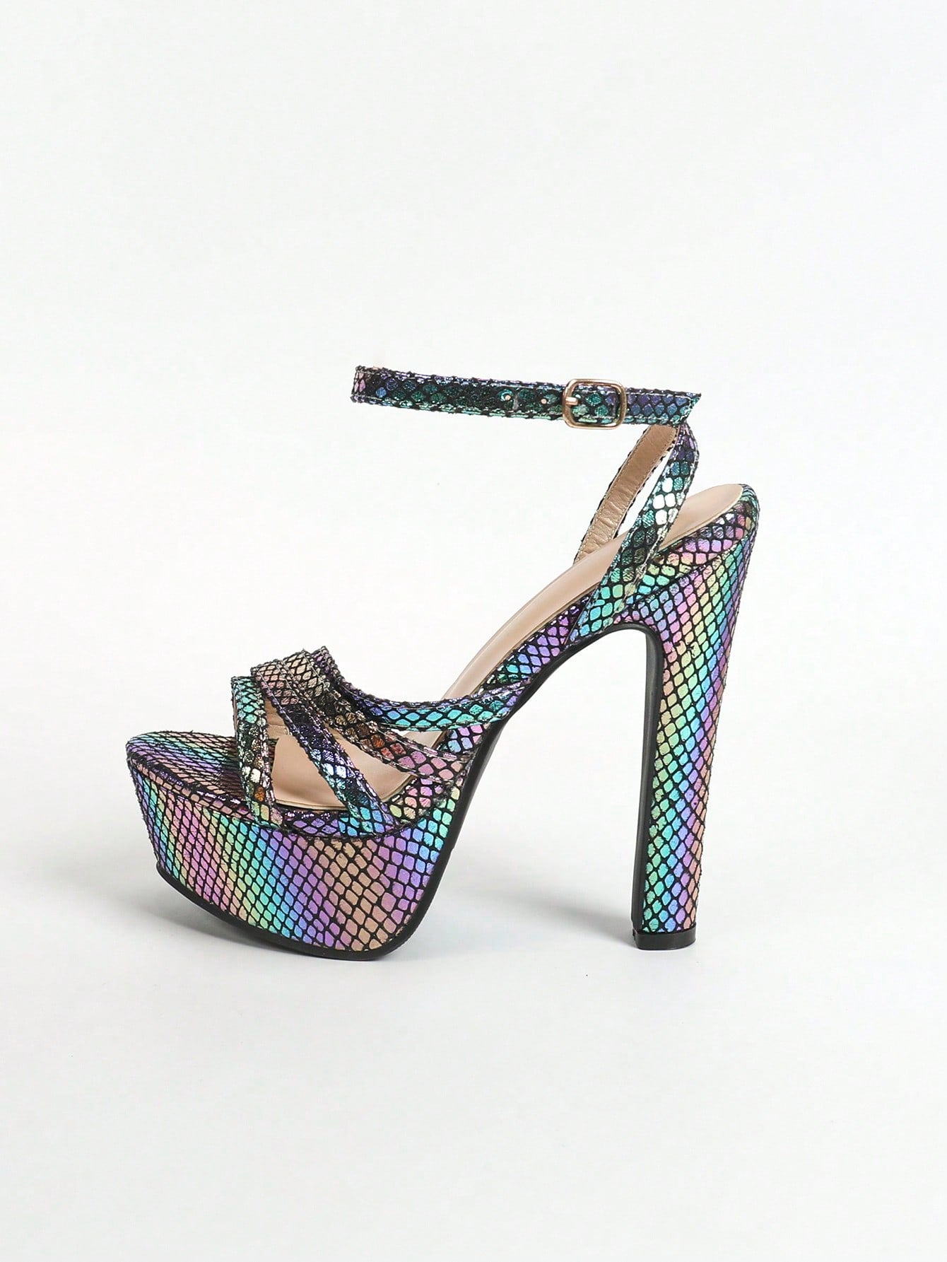 Vibrant Snake Skin Platform Sandals for Halloween - Strappy High Heel Design