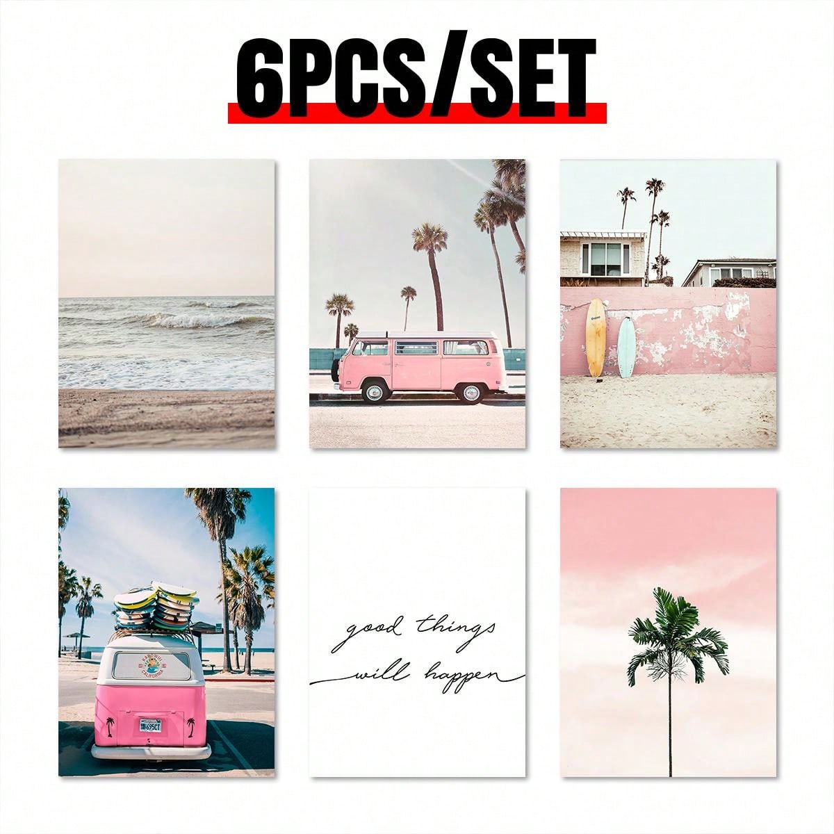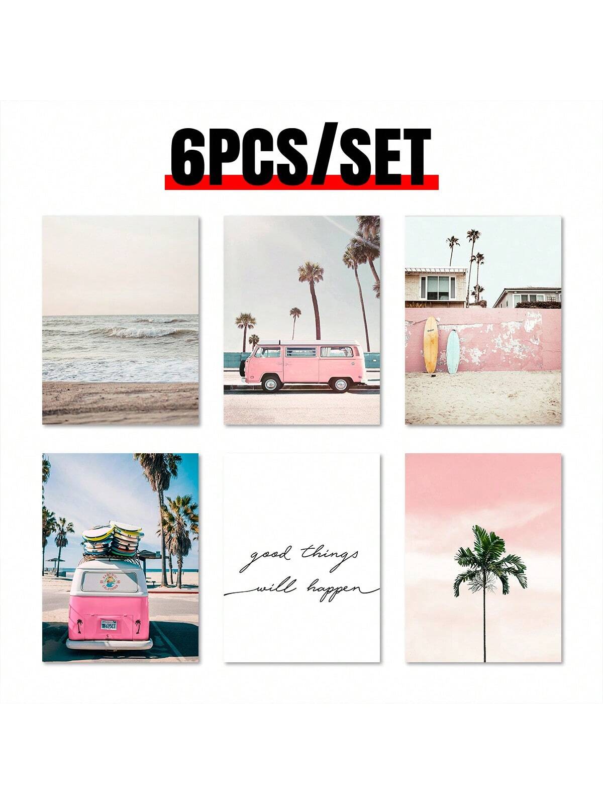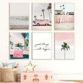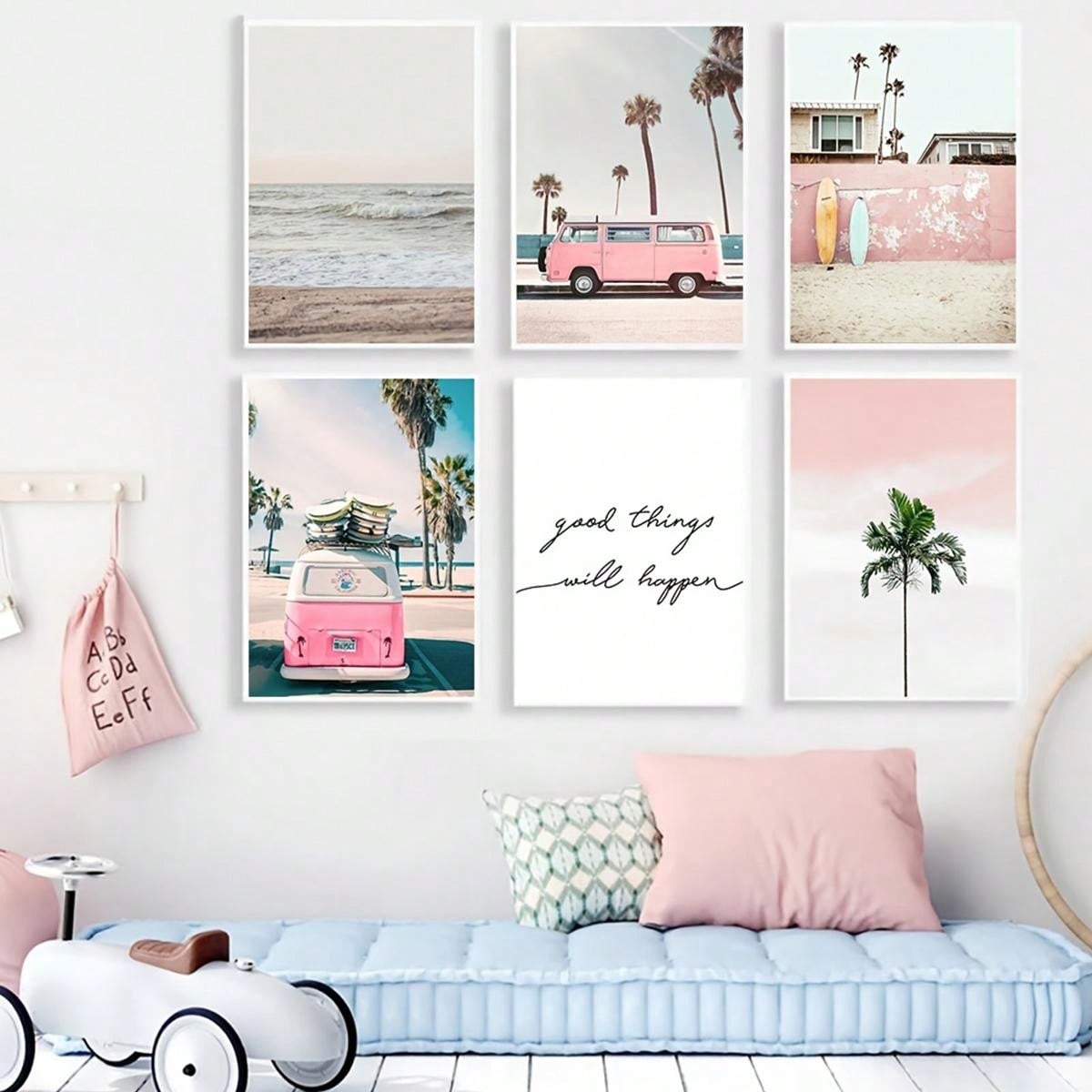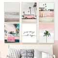 Enhance your home decor with our Vibrant Summer Sea Canvas Wall Art Collection. This set of 6 features a stunning pink bus print and bright, summery colors. Perfect for adding a touch of beachy vibes to any room.