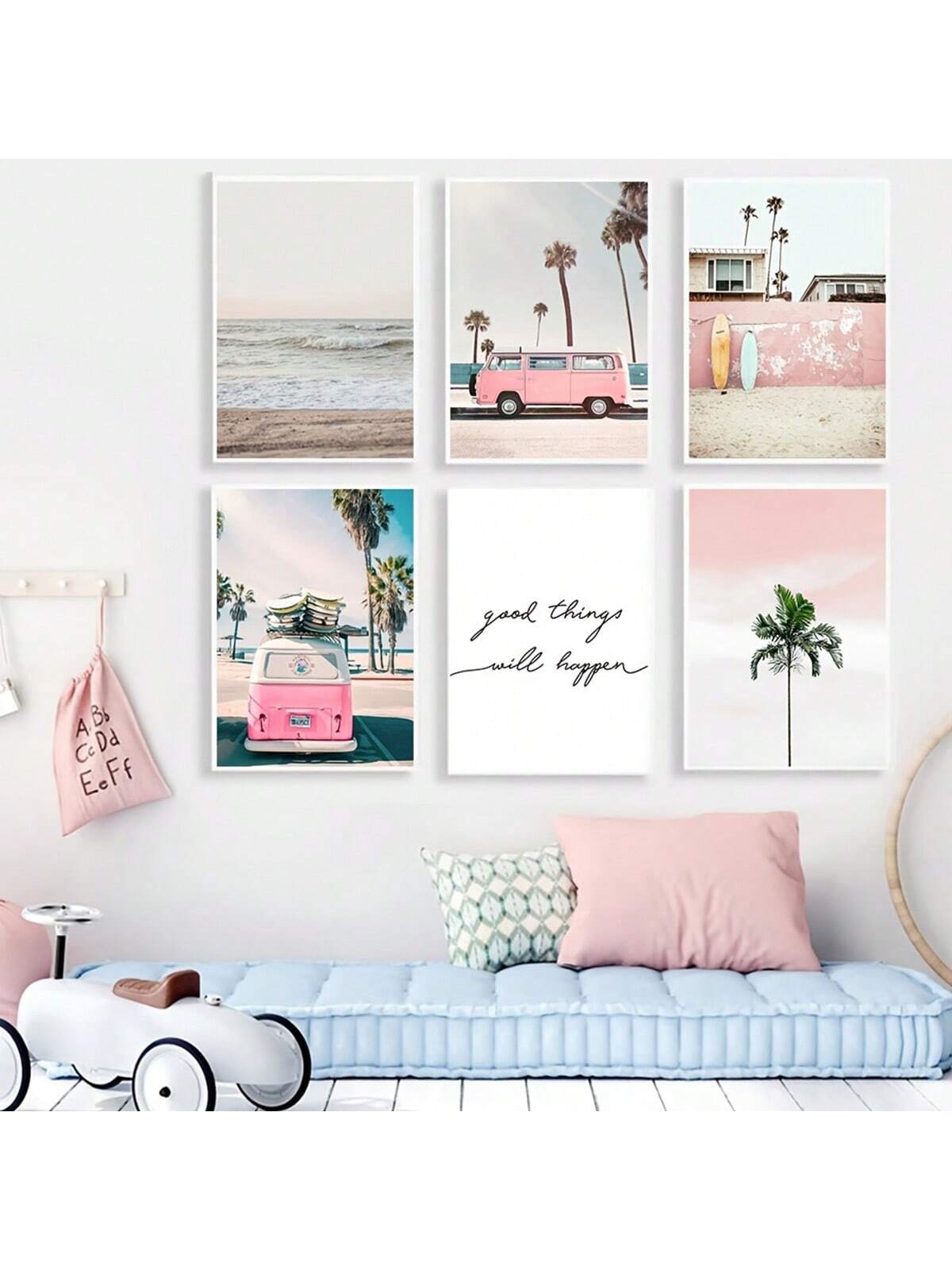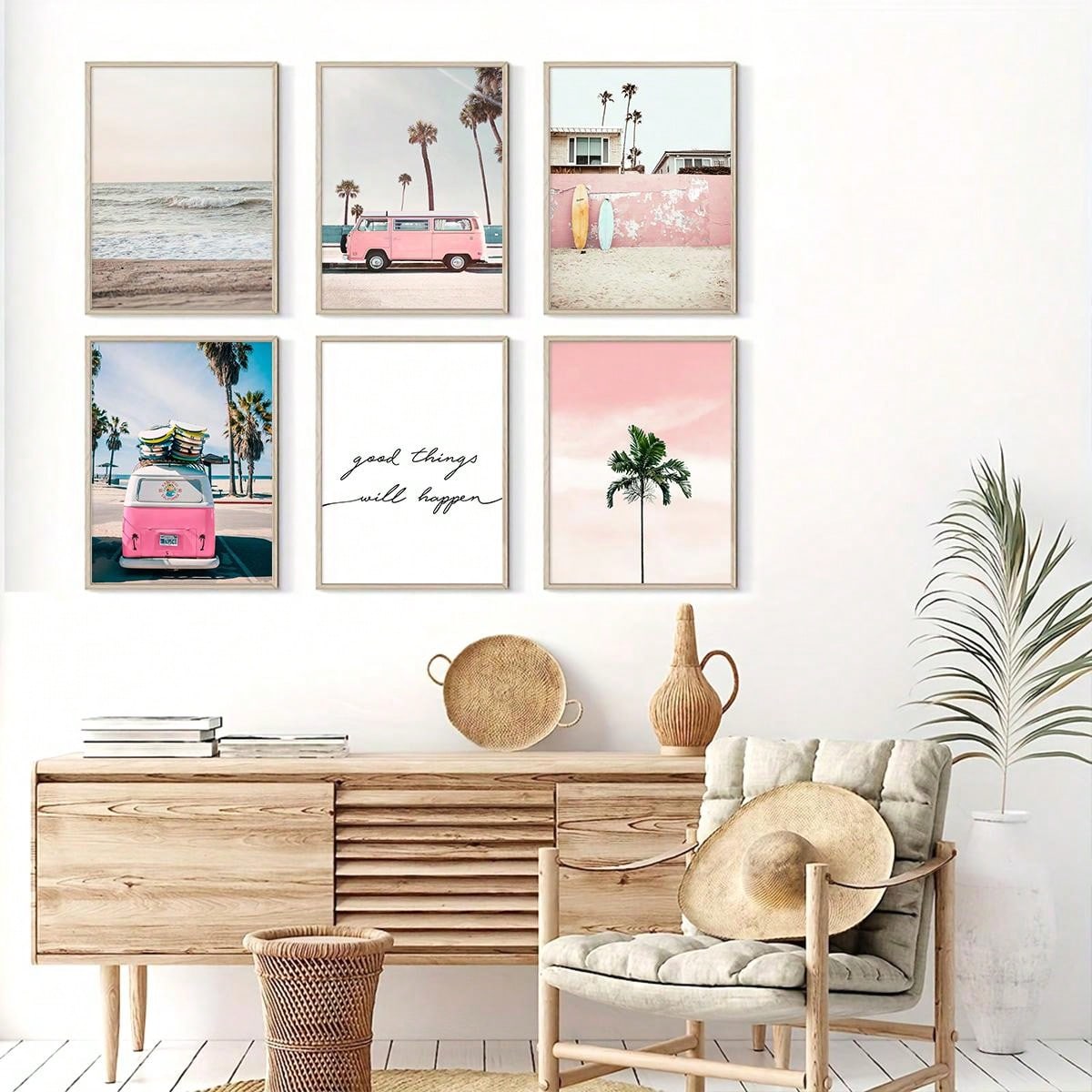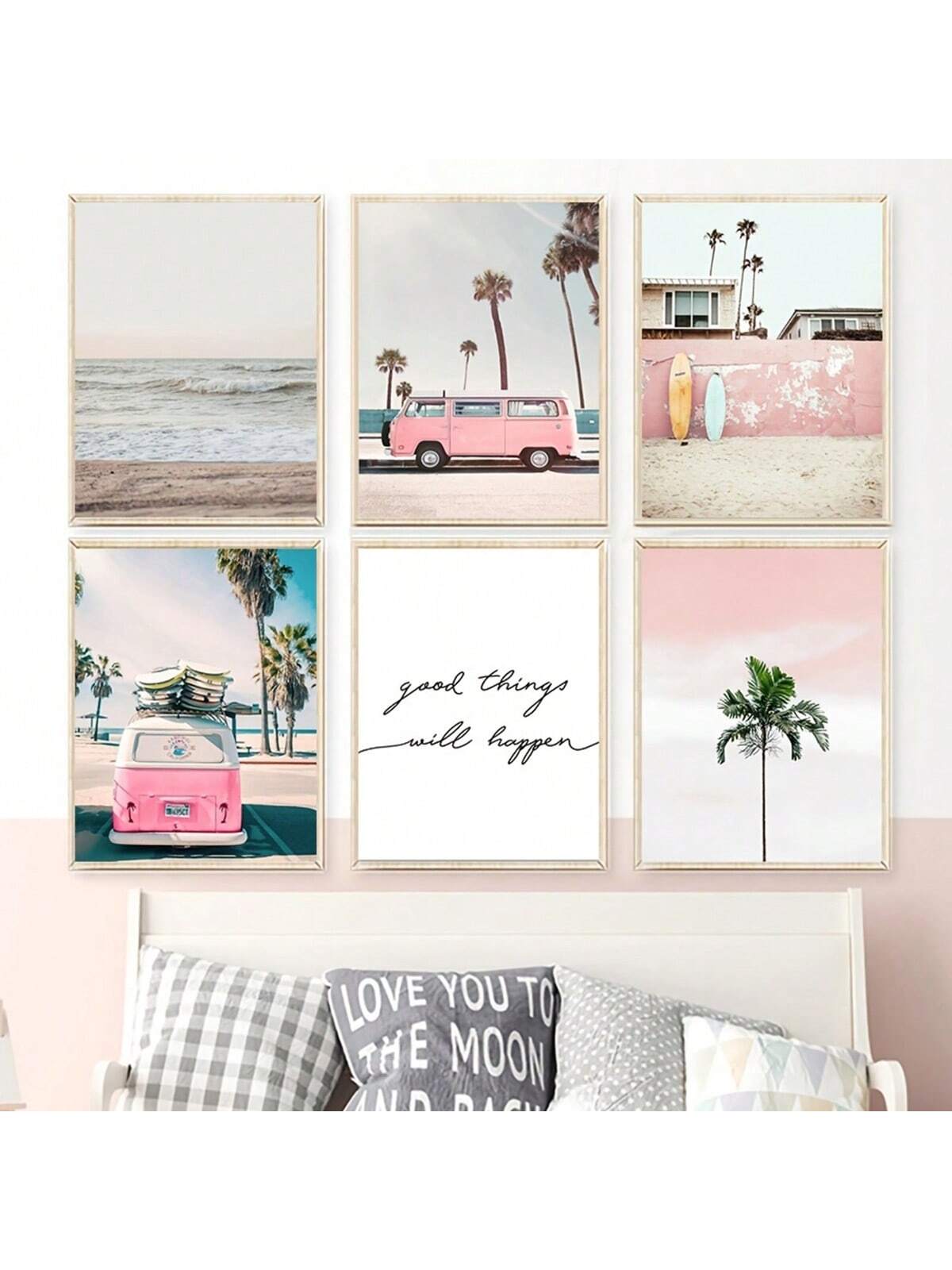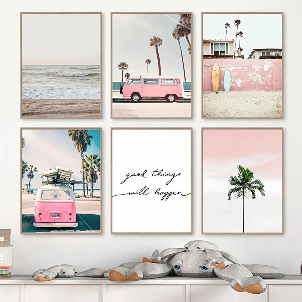 Enhance your home decor with our Vibrant Summer Sea Canvas Wall Art Collection. This set of 6 features a stunning pink bus print and bright, summery colors. Perfect for adding a touch of beachy vibes to any room.