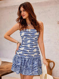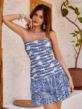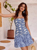 Vibrant Vacation Ready: Printed Bodycon Dress with Pleated Hem and Layered Design