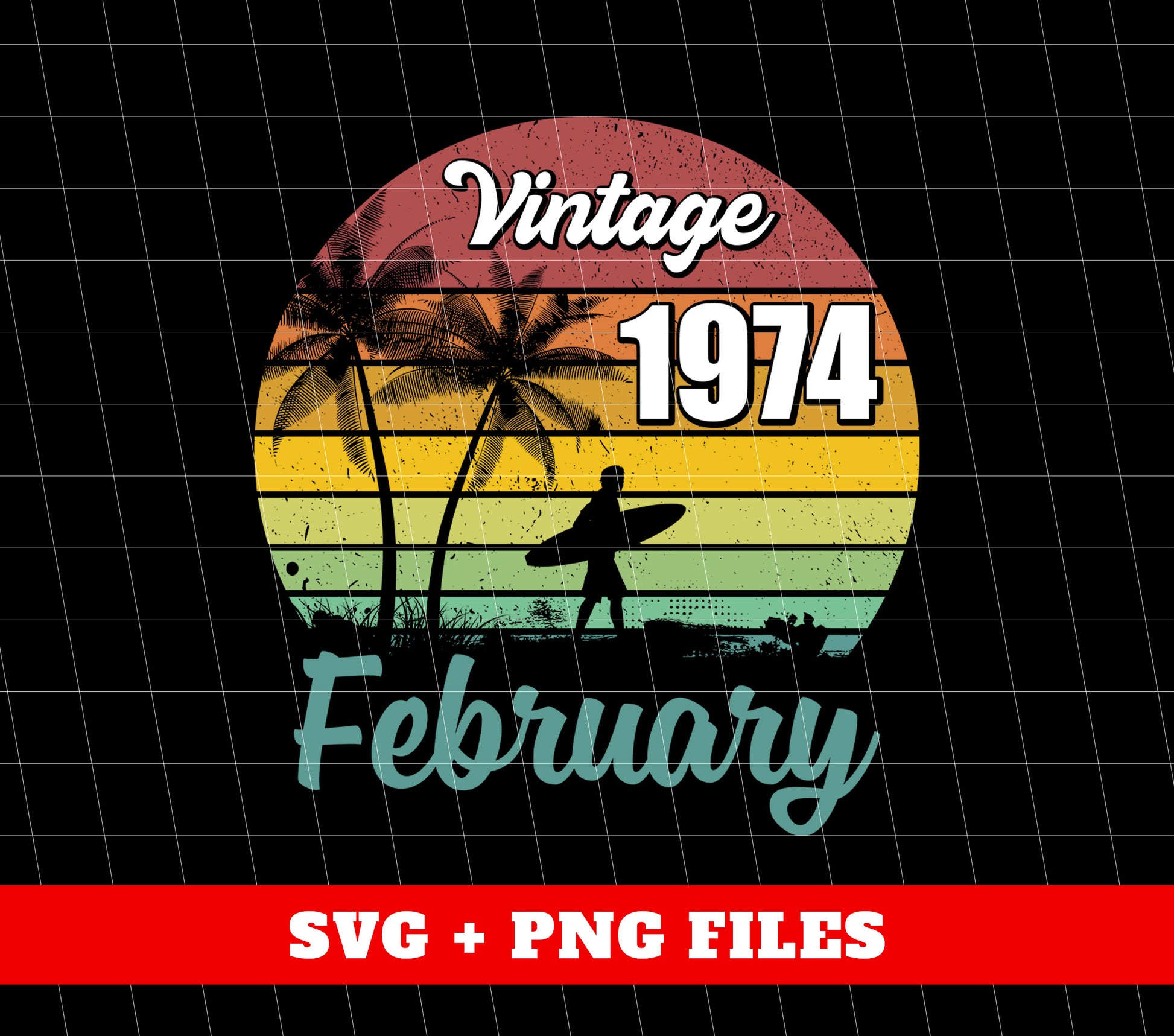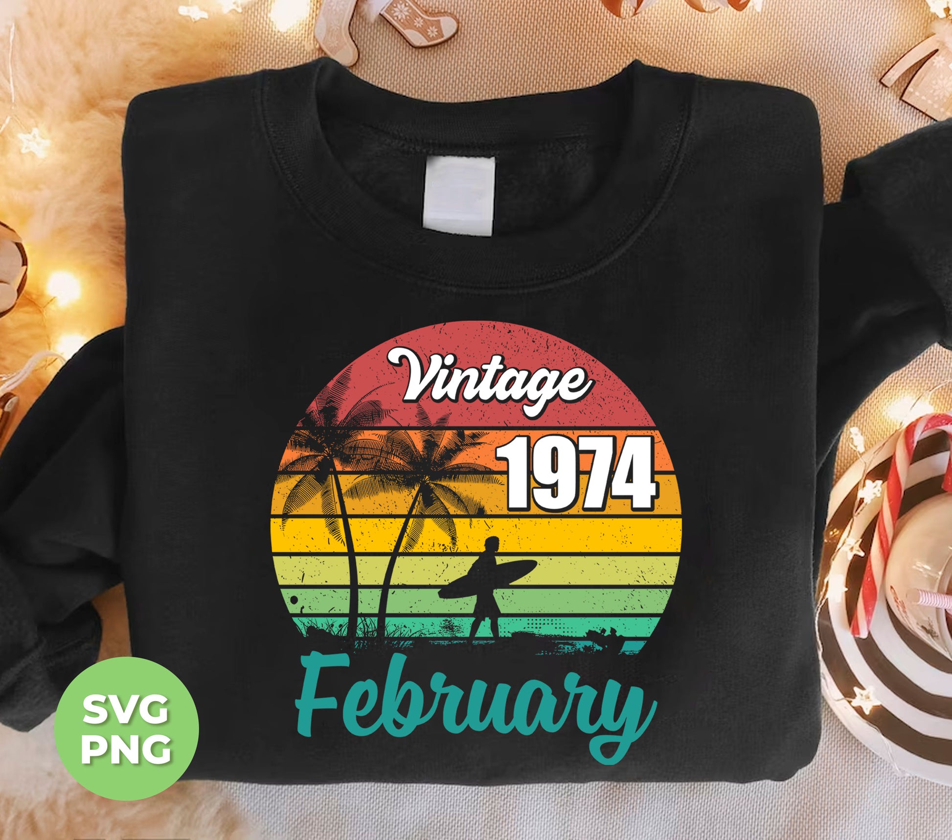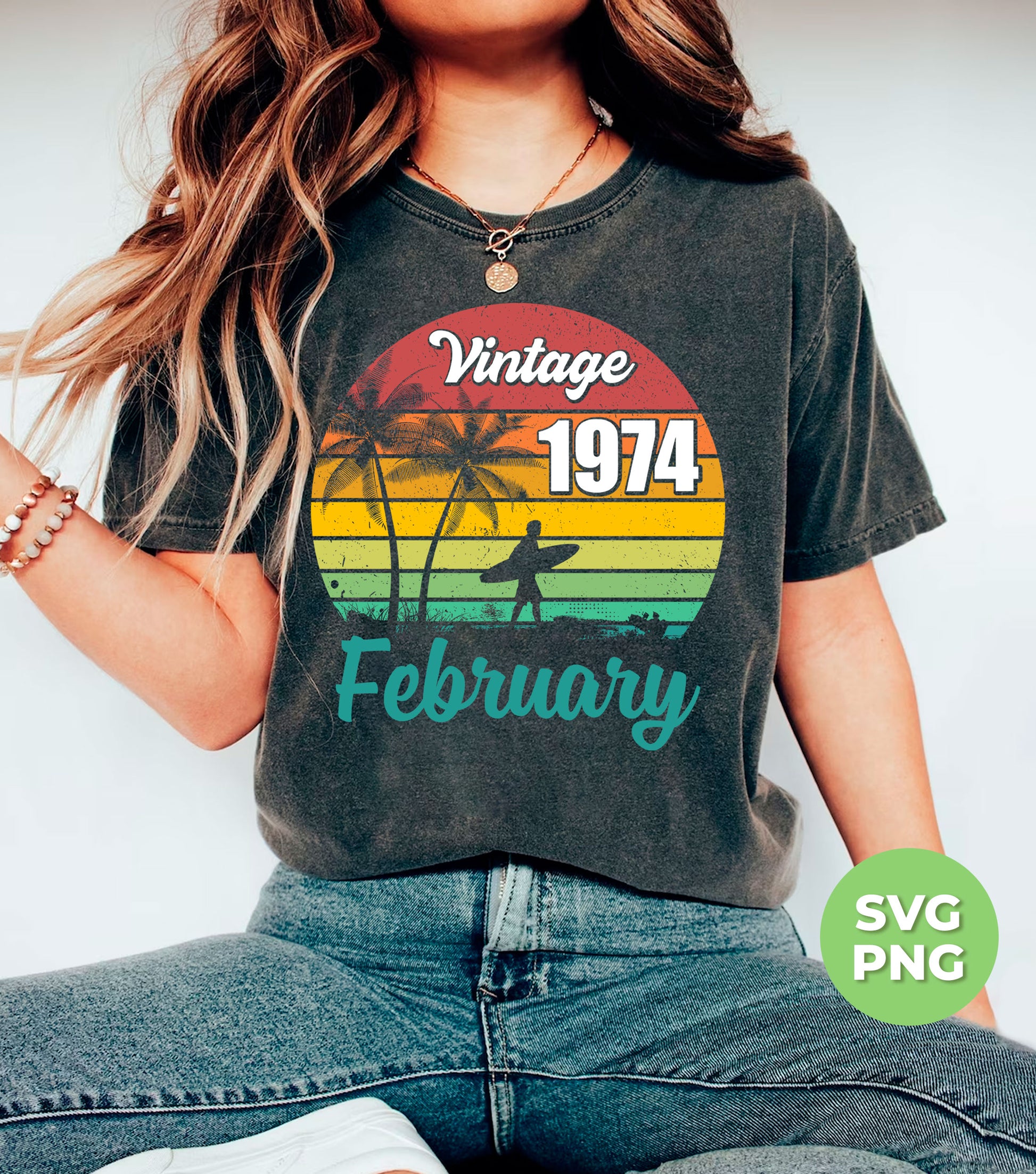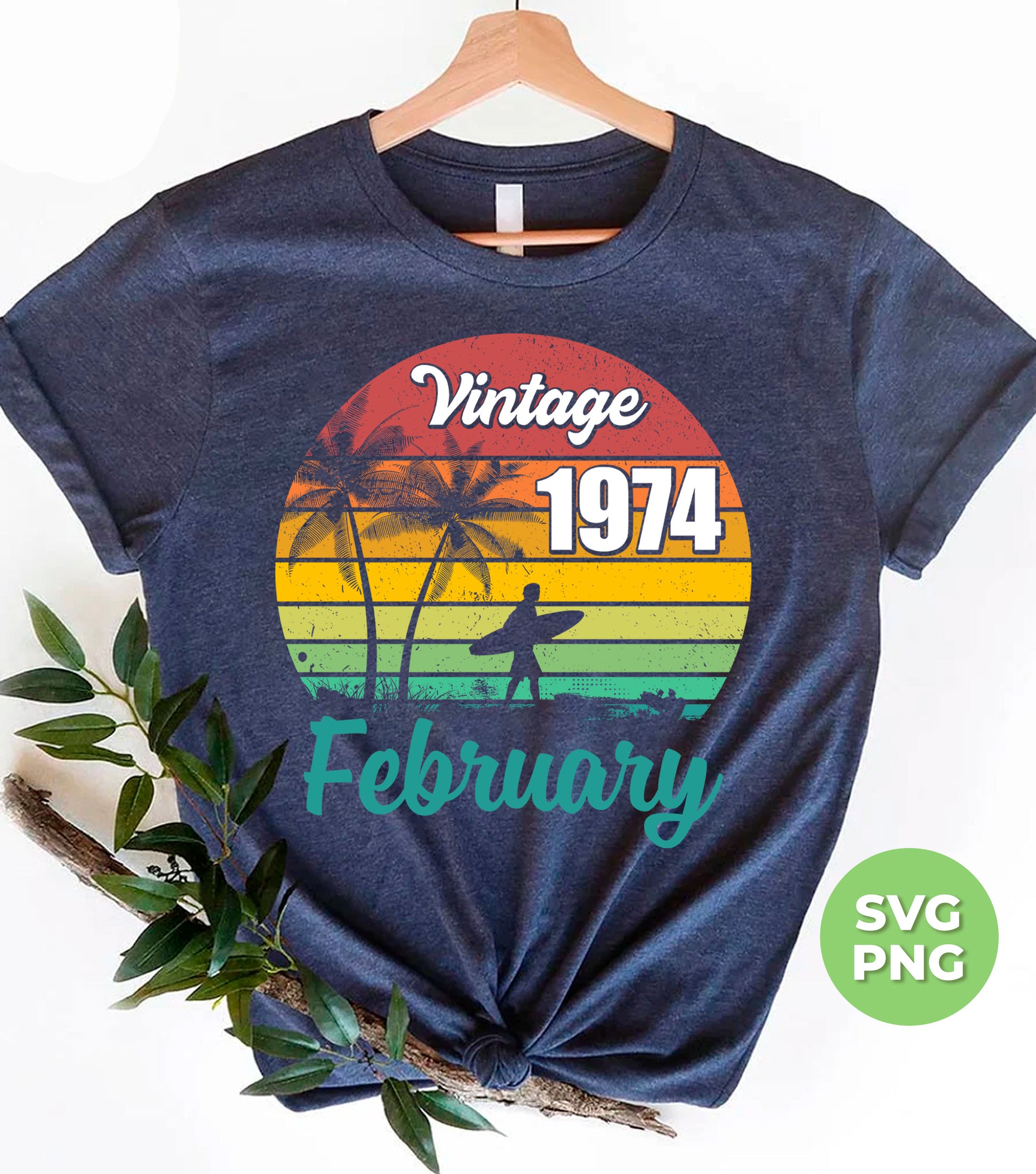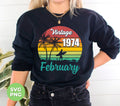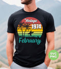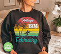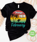 Vintage 1974 February, Retro Birthday, Summer Vibes, Digital Files, Png Sublimation