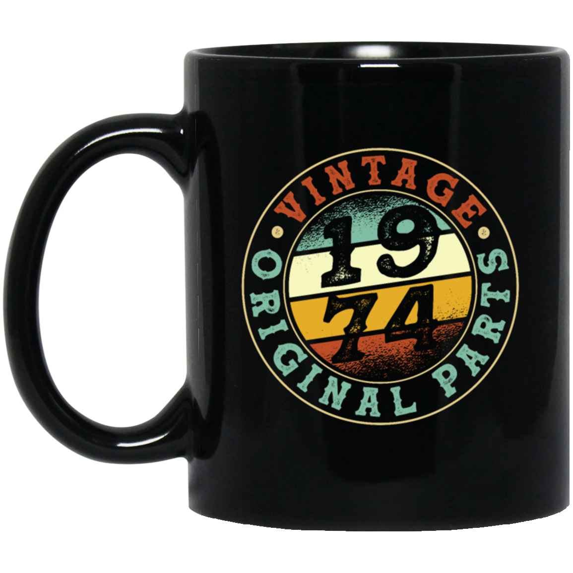Vintage 1974, Retro 1974 Birthday Gift, Original Part 1974 Black Mug