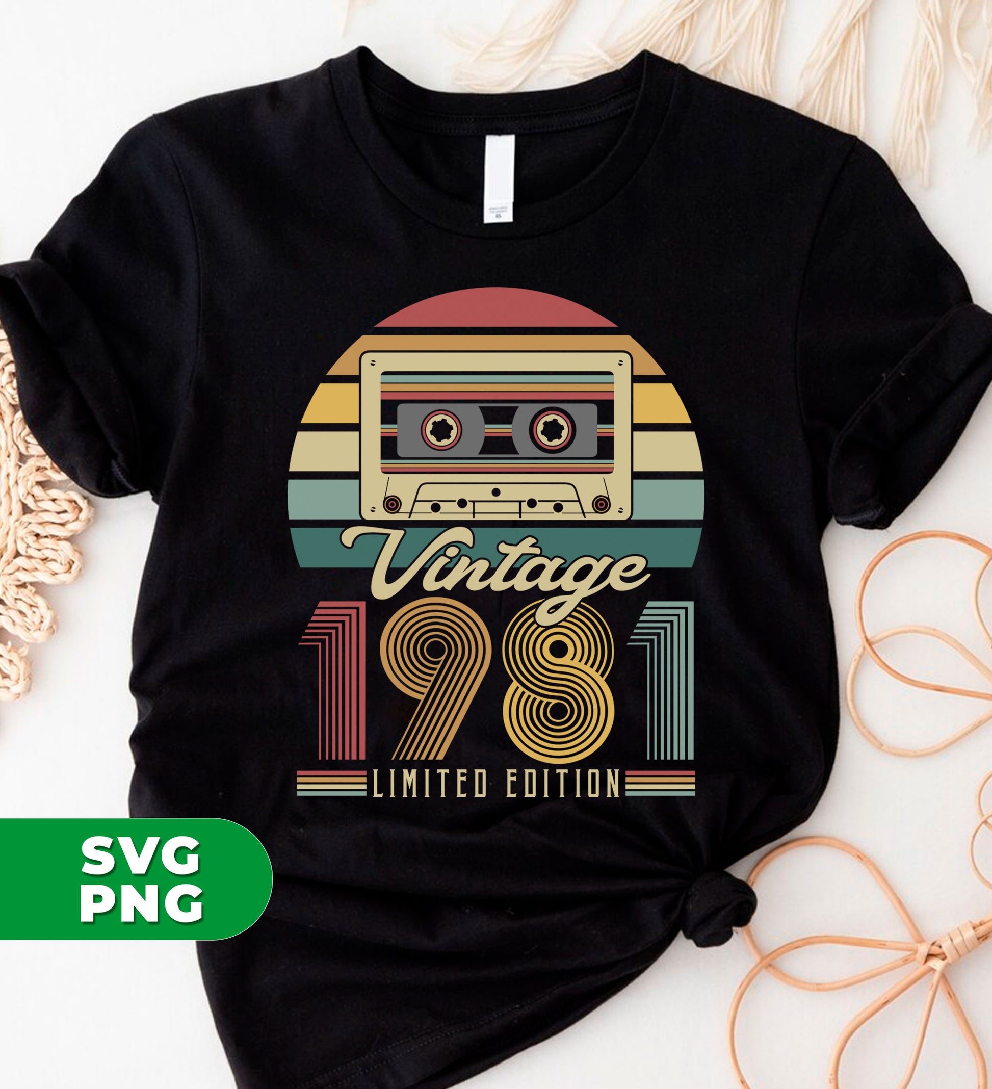 Vintage 1981, Retro Birthday 1981, Limited Edition, 1981 Birthday, Digital Files, Png Sublimation