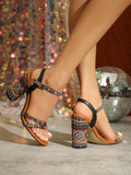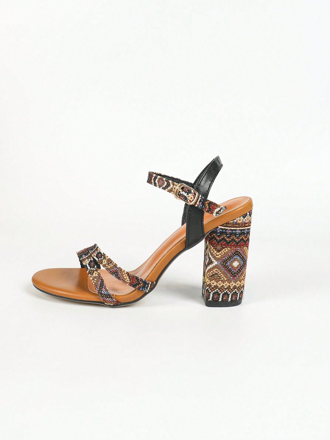 Vintage Chic: Comfortable Chunky Heel Ankle Strap Sandals in Brown