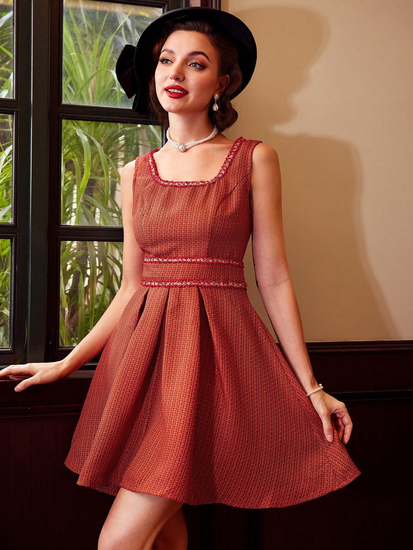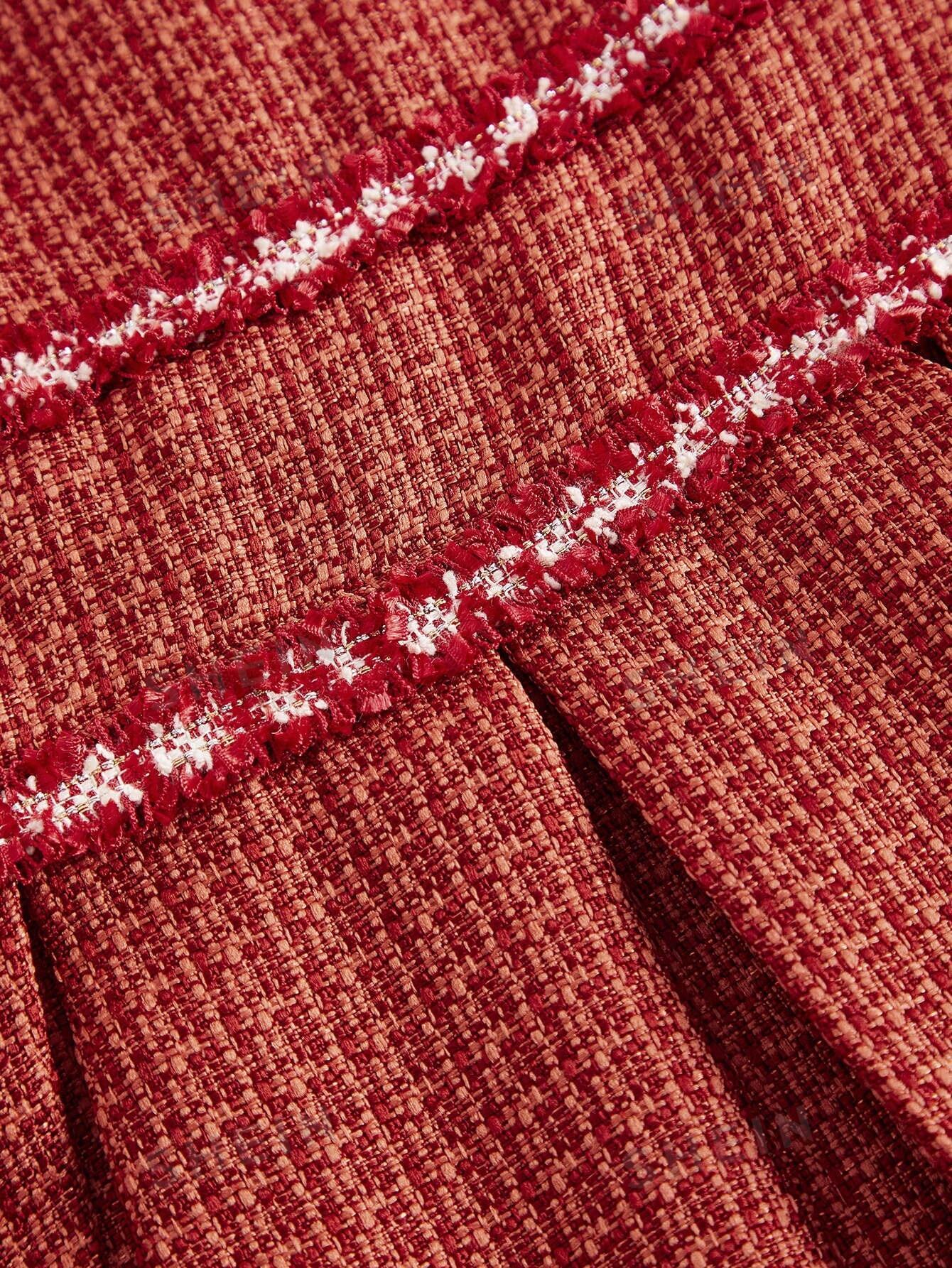 Vintage Elegance: Patchwork Tweed Lace A-Line Dress With Umbrella Skirt