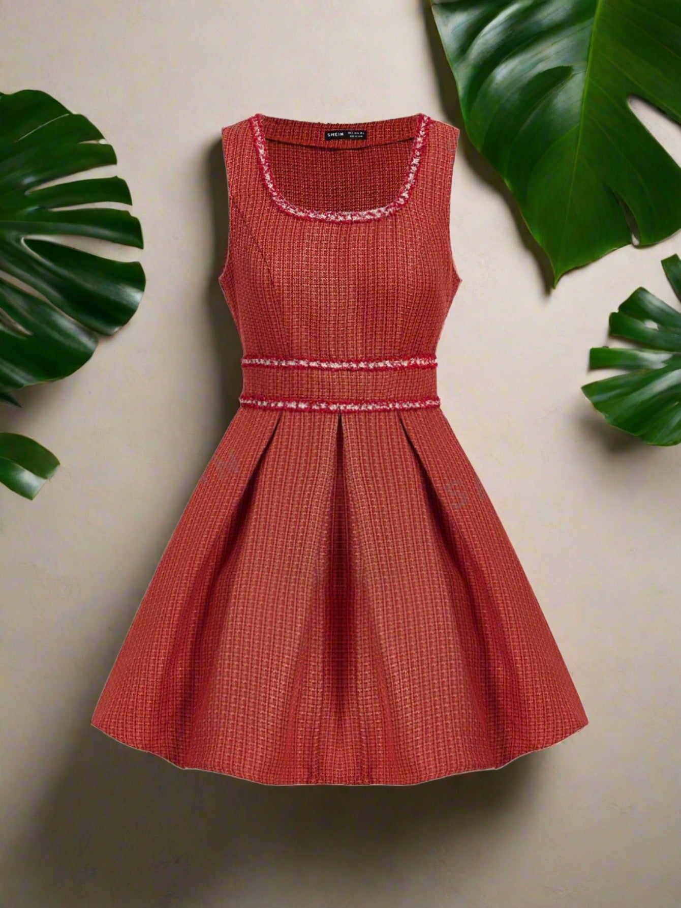 Indulge in timeless elegance with our Vintage Elegance dress. This A-line dress features a stunning patchwork design, crafted from high-quality tweed fabric and delicate lace details. The unique umbrella skirt adds a touch of vintage charm, making it a must-have for any fashion-forward woman. Elevate your style with this exquisite piece.