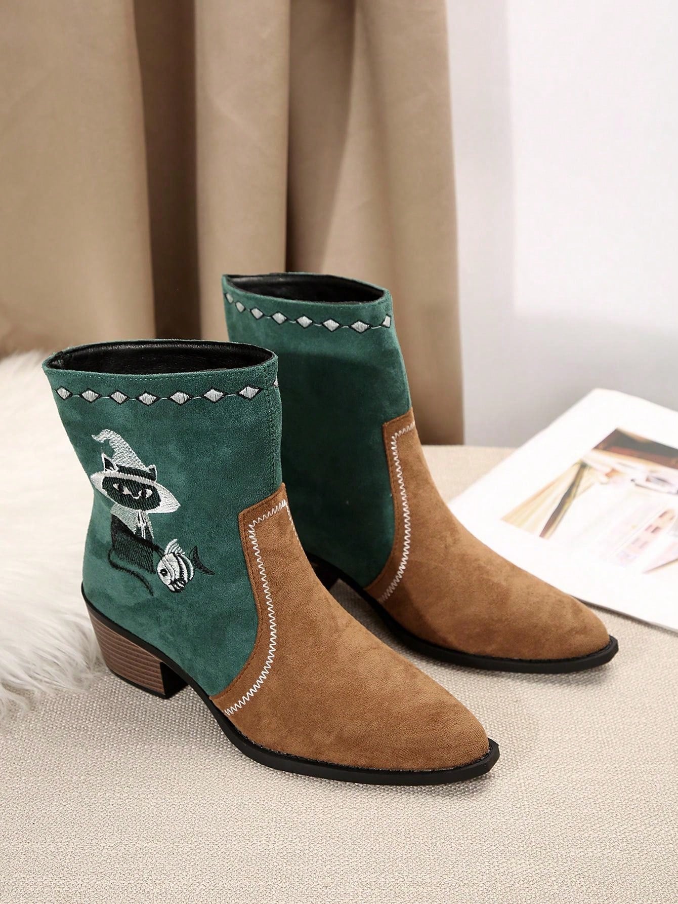 Vintage Western Style Embroidered Mid-Calf Boots for Women - Autumn/Winter Collection