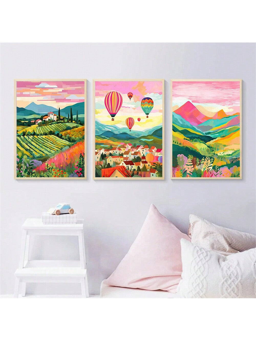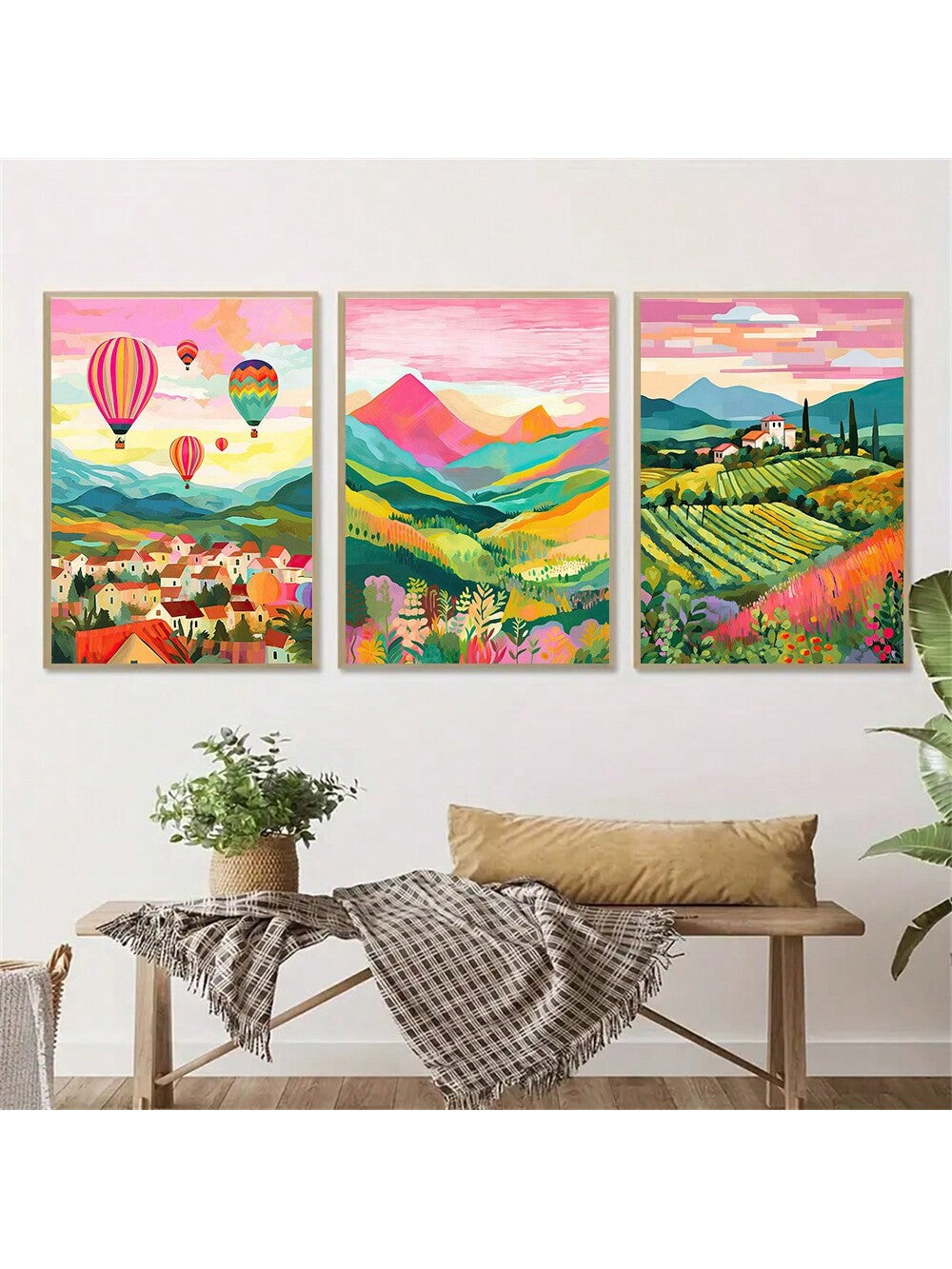 Vivid Nature Landscape Wall Art Set: 3 Frameless Flower and Mountain Posters