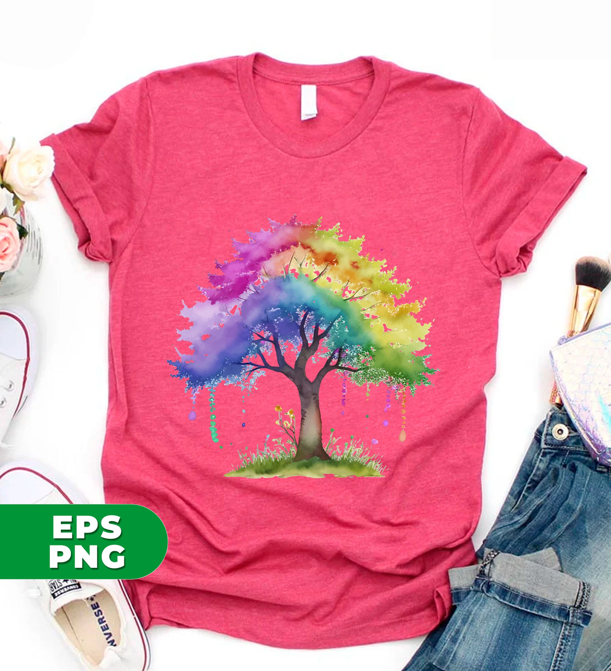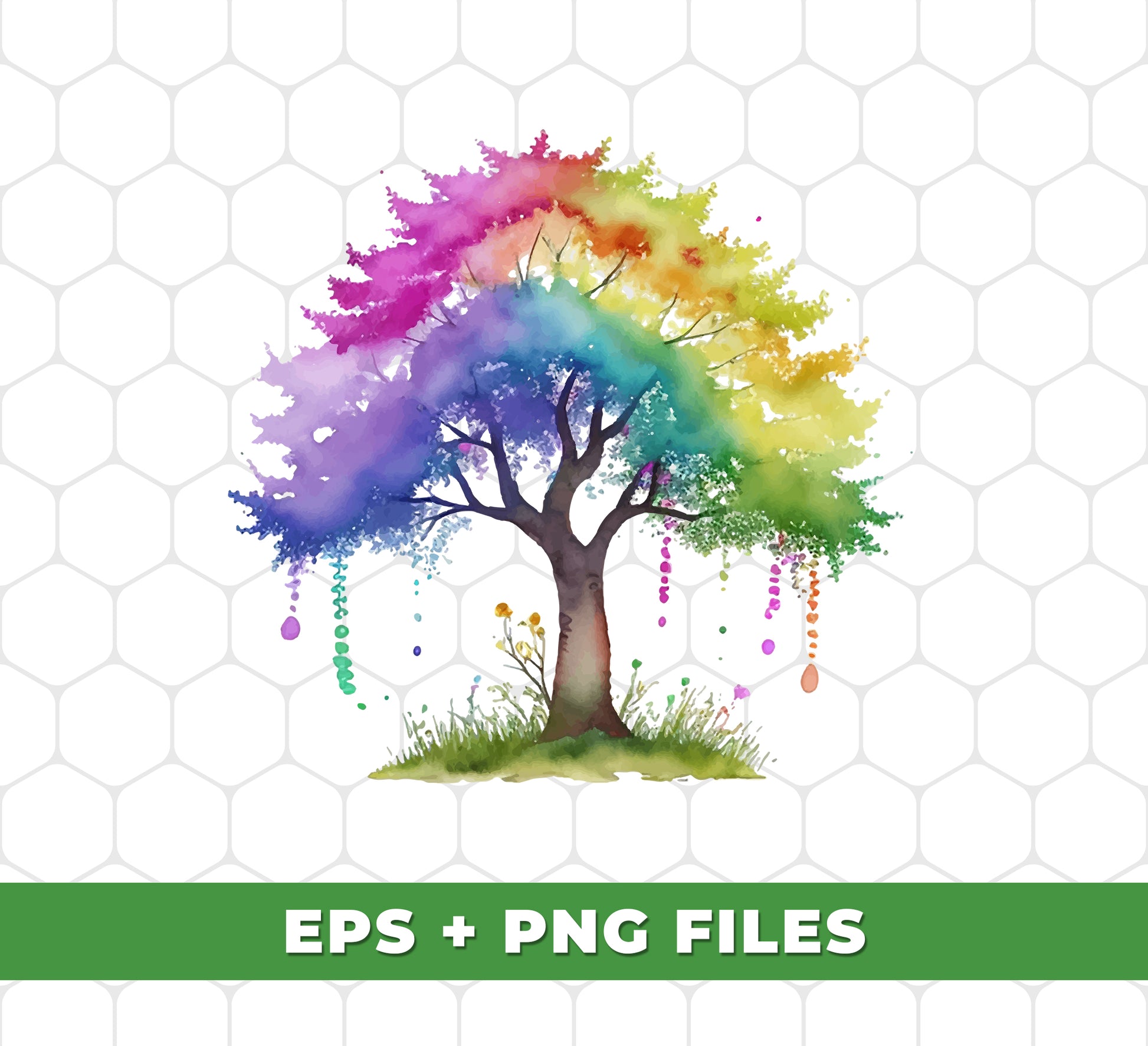 Watercolor Tree, Tree Blossom, Colorful Tree, Digital Files, Png Sublimation