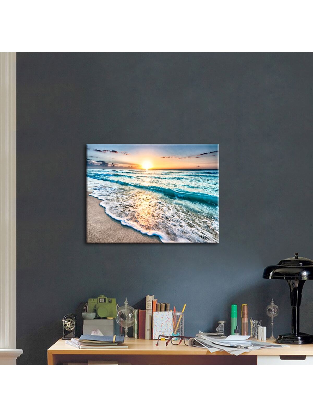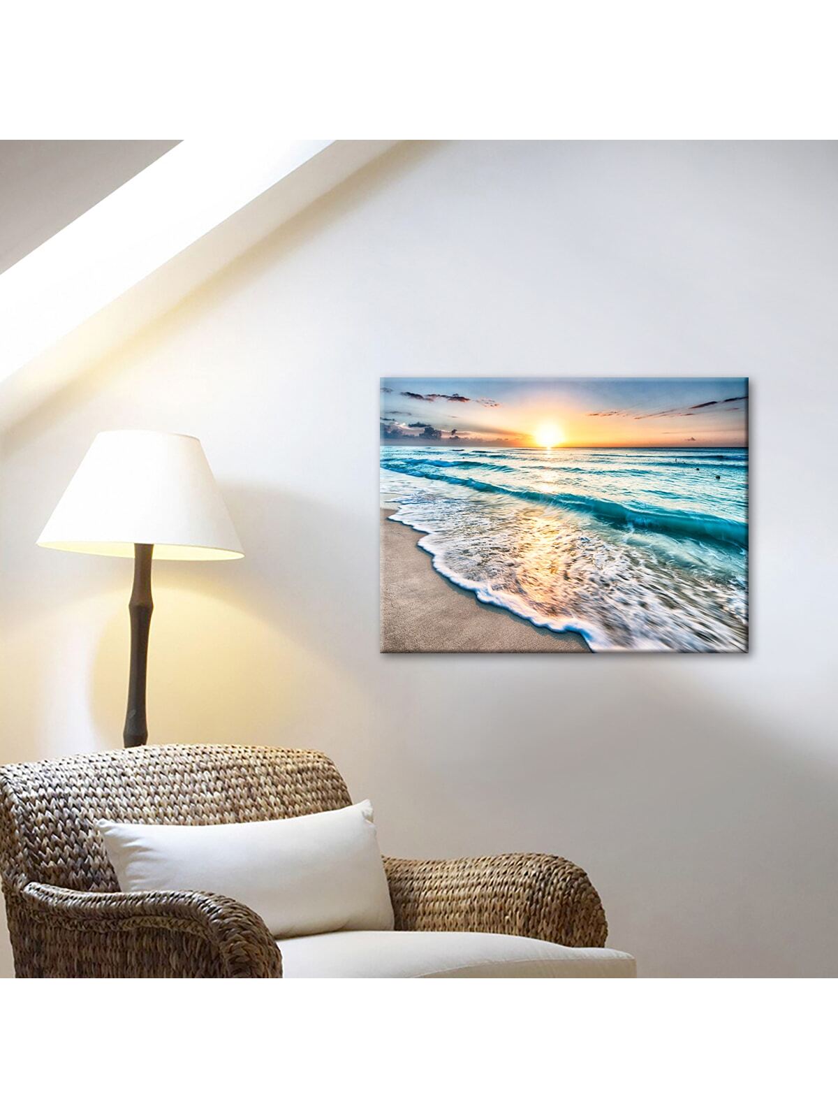 Bring the beauty of nature into your home with the Wave of Sunset Canvas Poster. This Nordic-style piece of art will add a touch of serenity to any room. Made with high-quality materials, it is perfect for home decoration and will elevate the aesthetic of any living space.