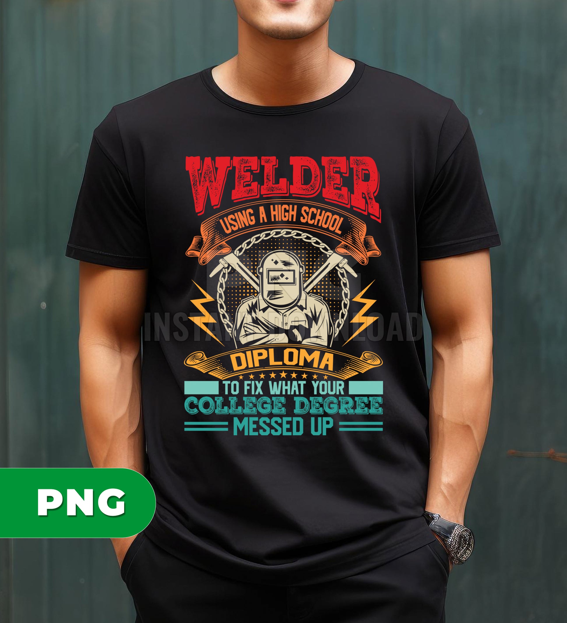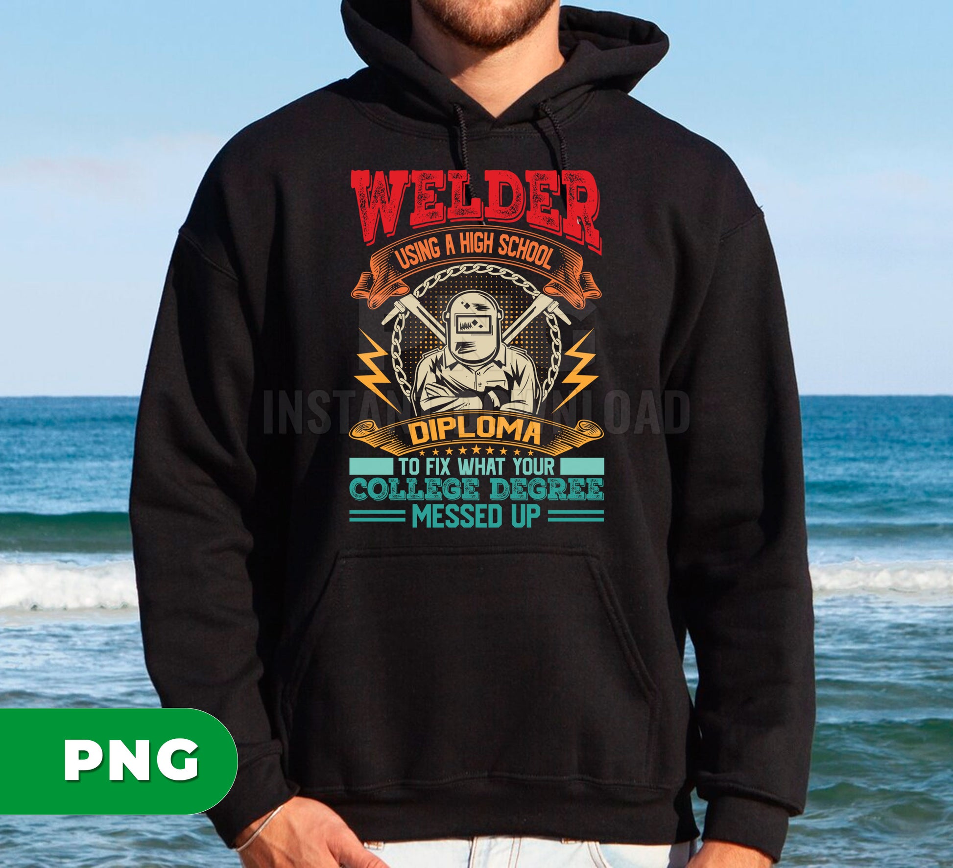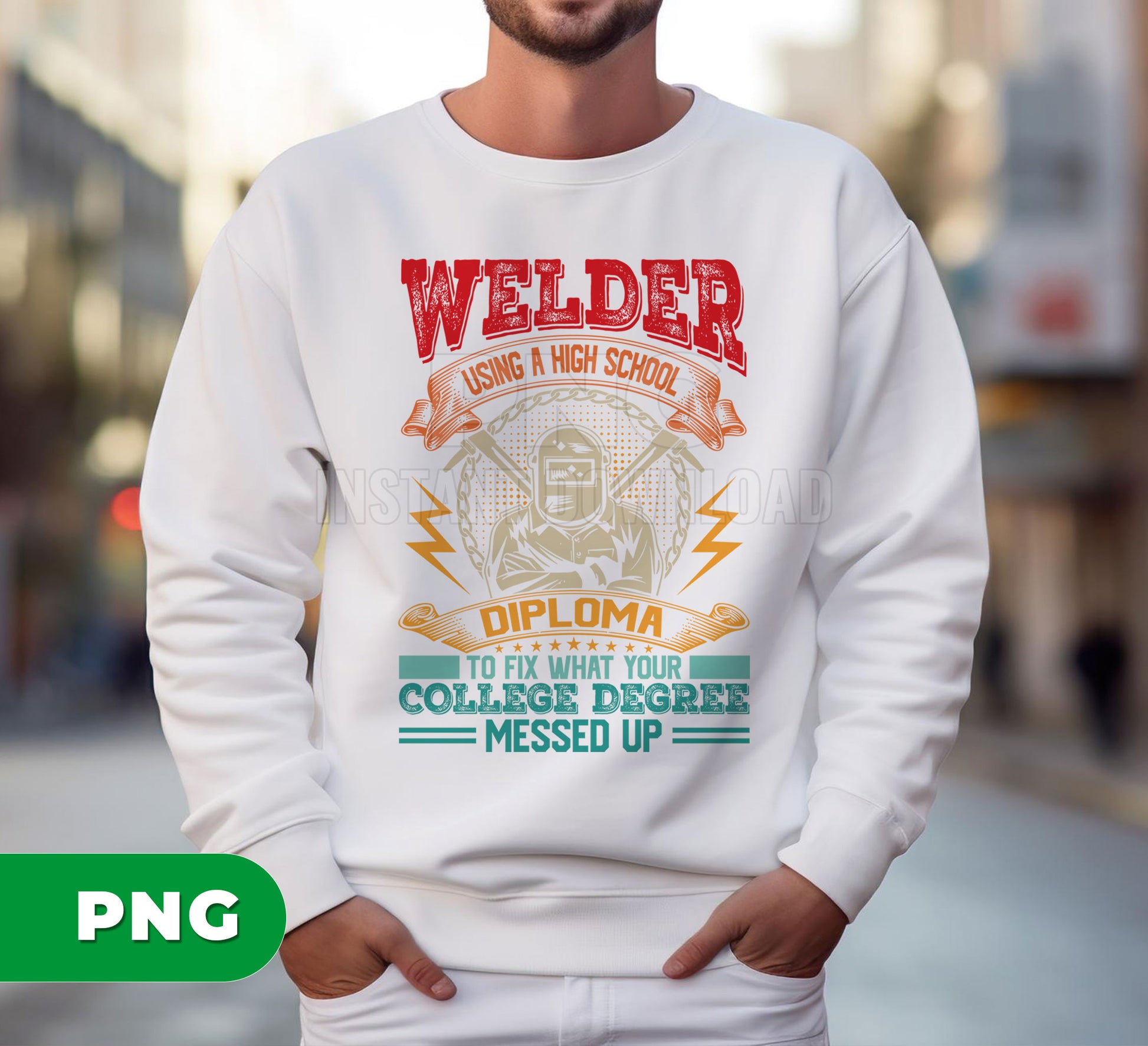 Welder Using High School Diploma PNG, Funny Welder Saying PNG, Welding Humor Gift Design, Blue Collar Quote Sublimation, Instant Download