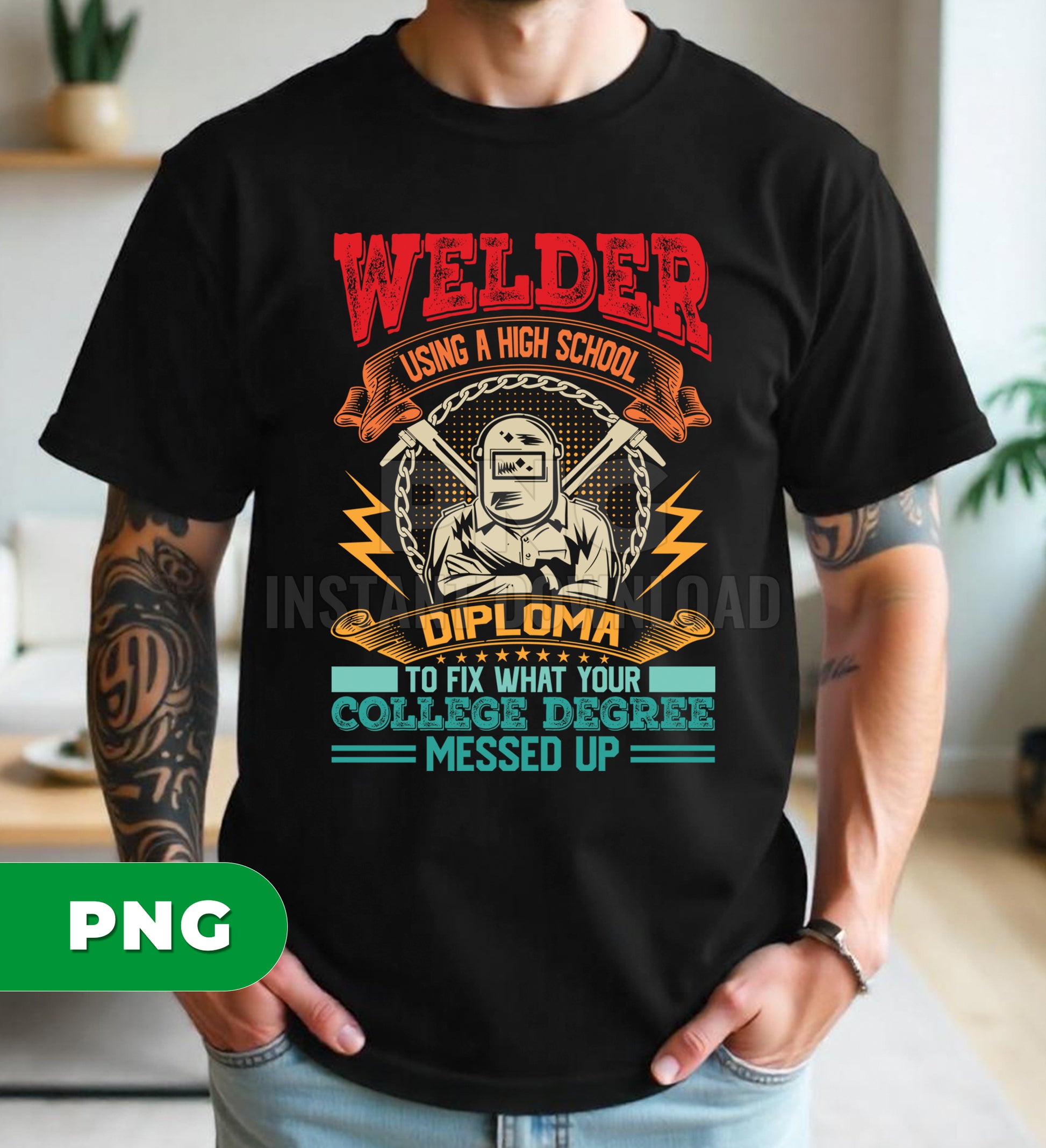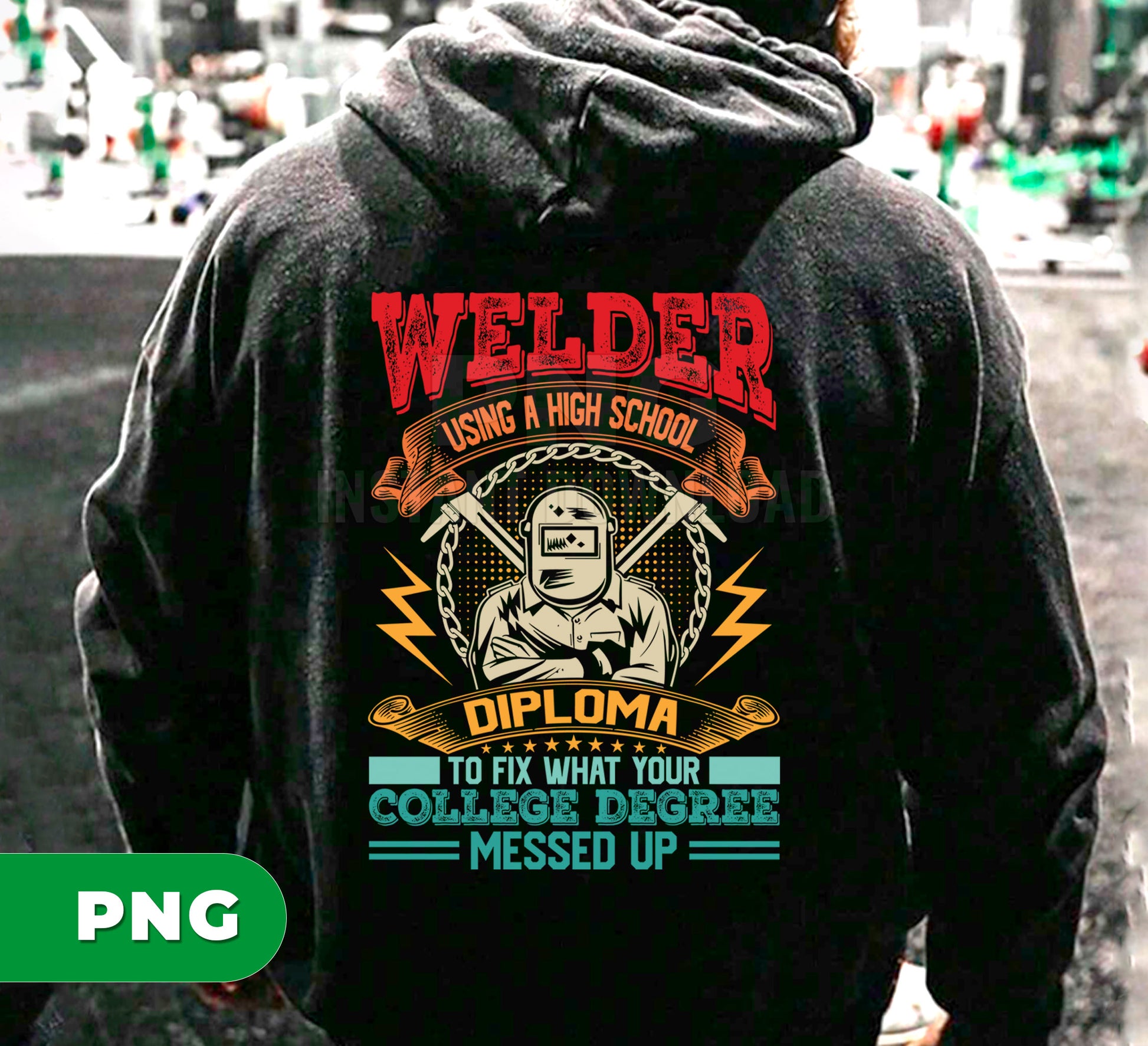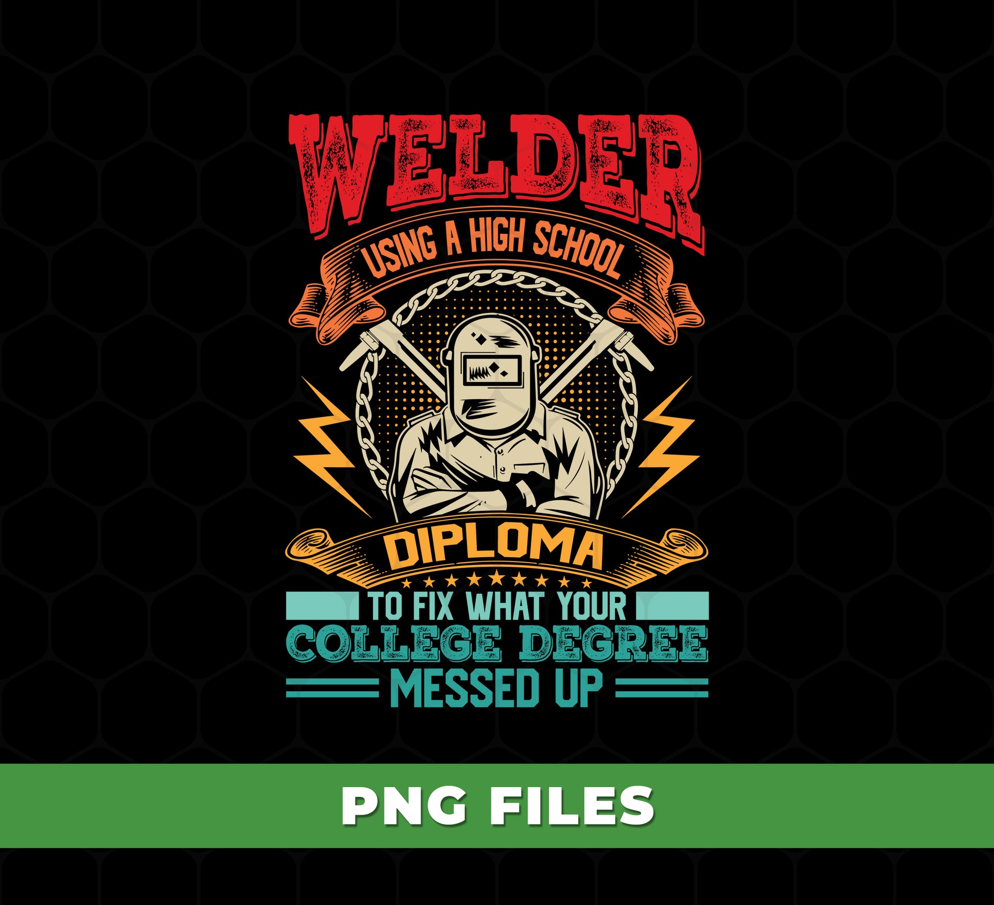 Welder Using High School Diploma PNG, Funny Welder Saying PNG, Welding Humor Gift Design, Blue Collar Quote Sublimation, Instant Download