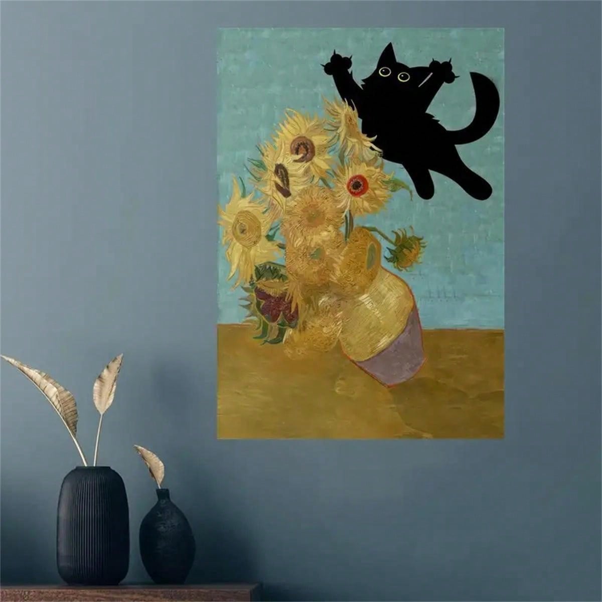 Whimsical Black Cat Wall Art: A Playful Addition to Any Home Decor Collection
