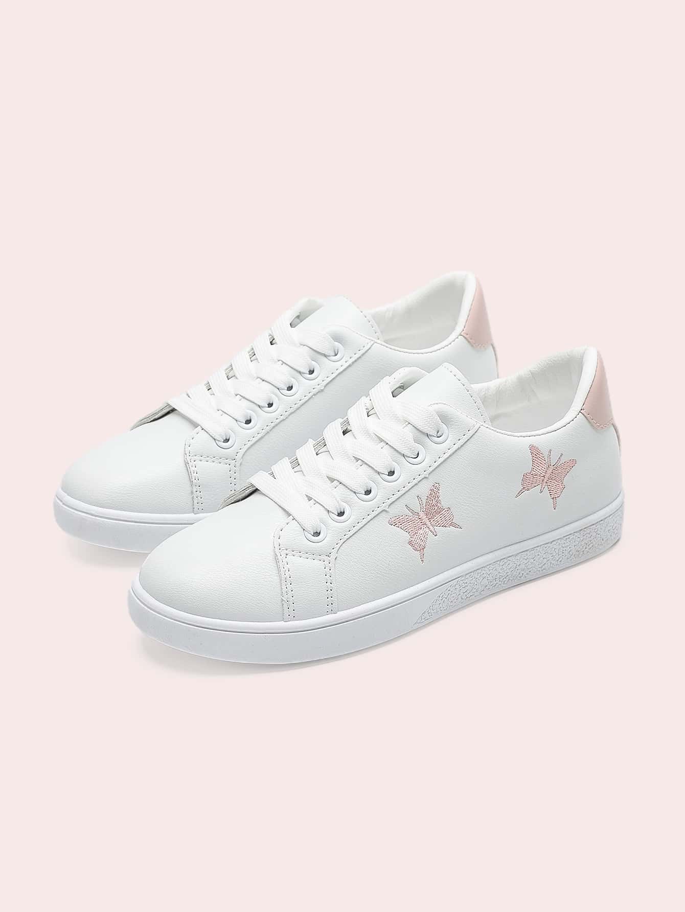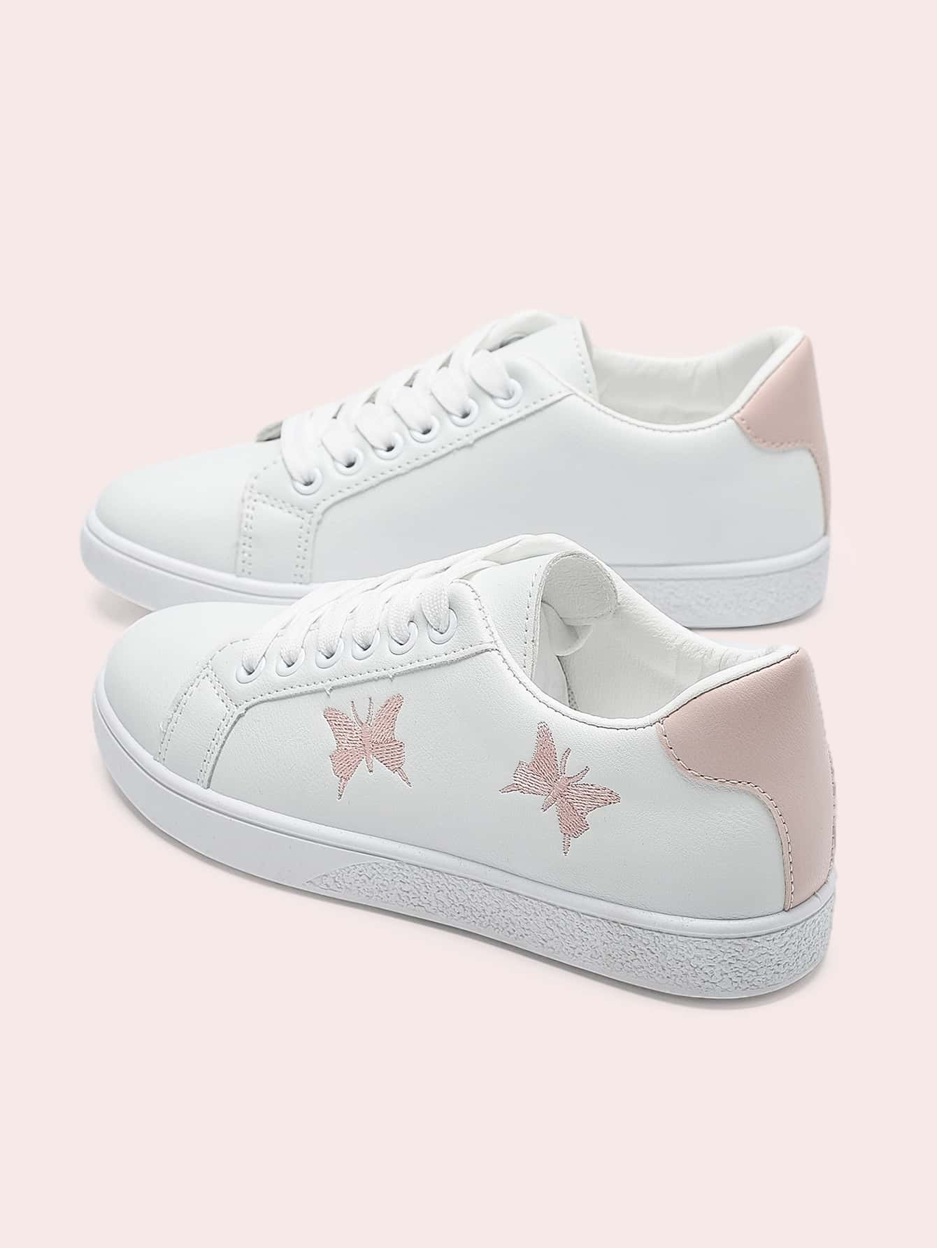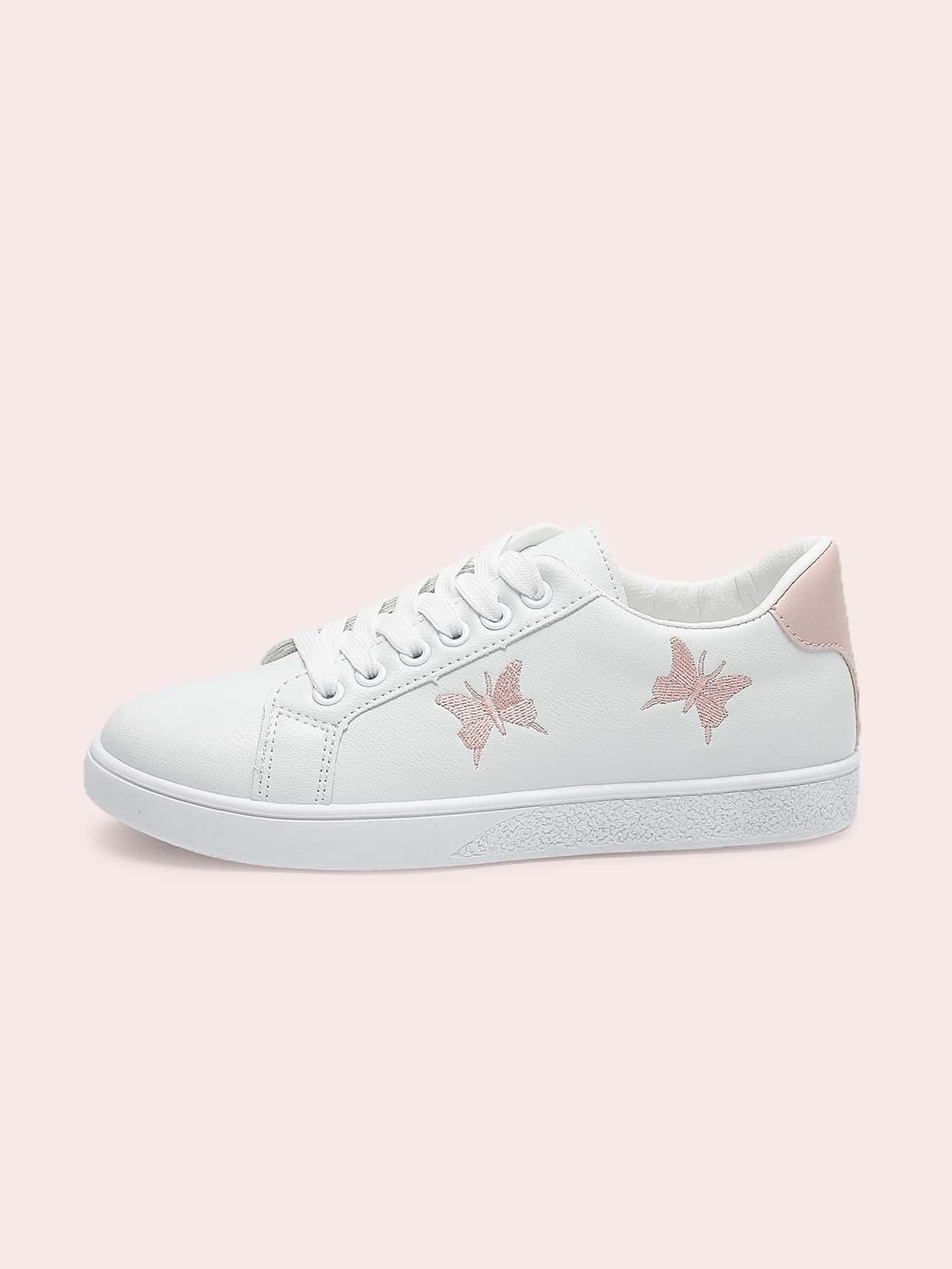 Whimsical Butterfly Lace-Up Skate Shoes – Sporty Cartoon Design in Classic White