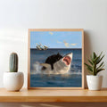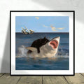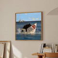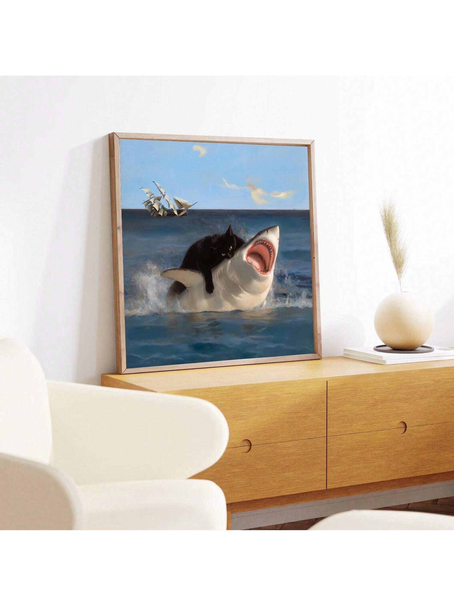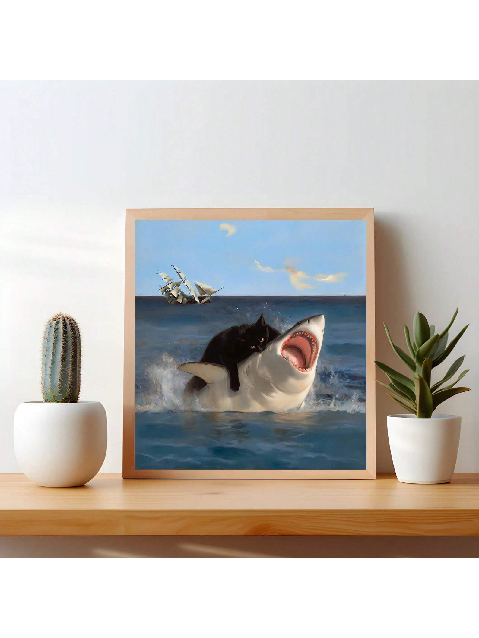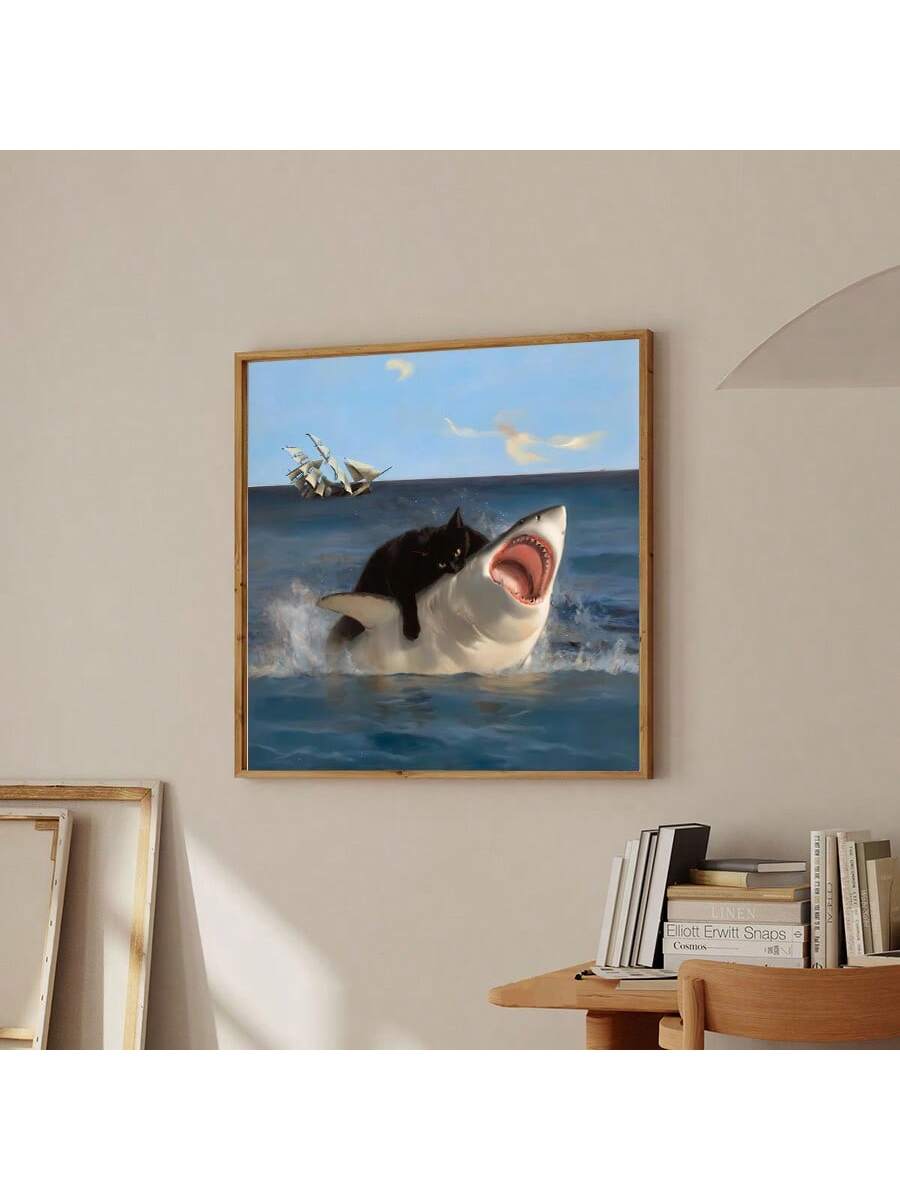 Whimsical Fat Cat and Shark Emoticon Canvas Print - Eclectic Renaissance Style Wall Art Decor for Bedroom and Living Room