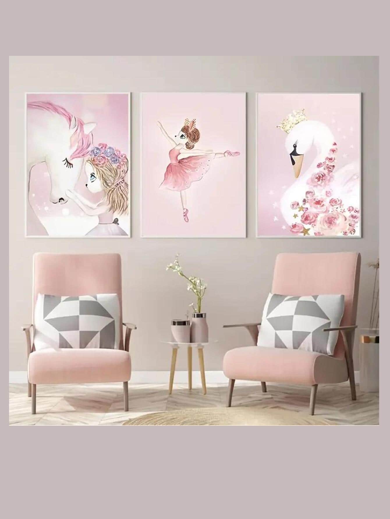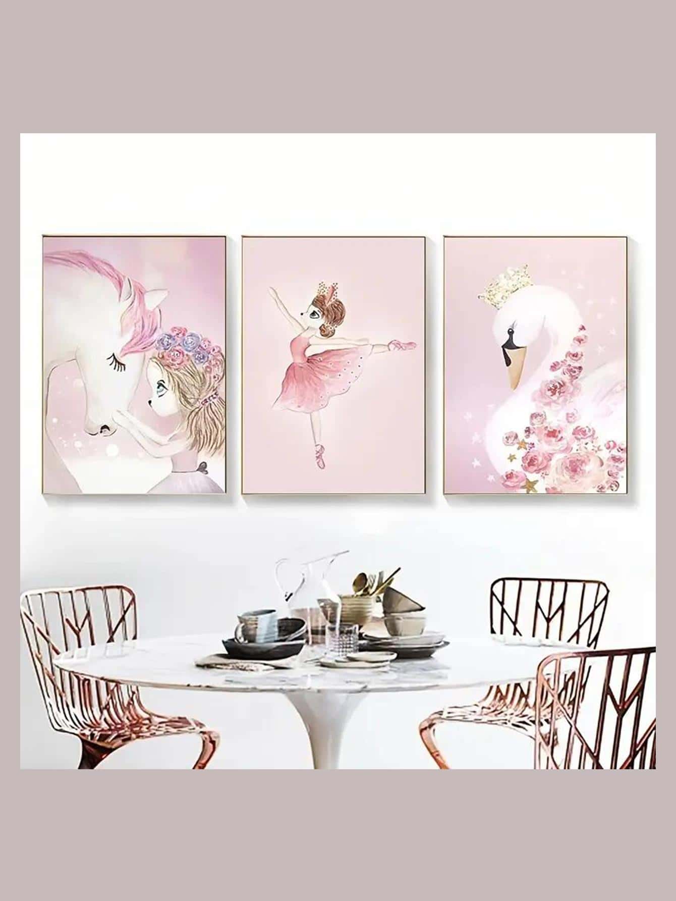 Whimsical Unicorn Trio Unframed Paintings Set for Modern Home Decor