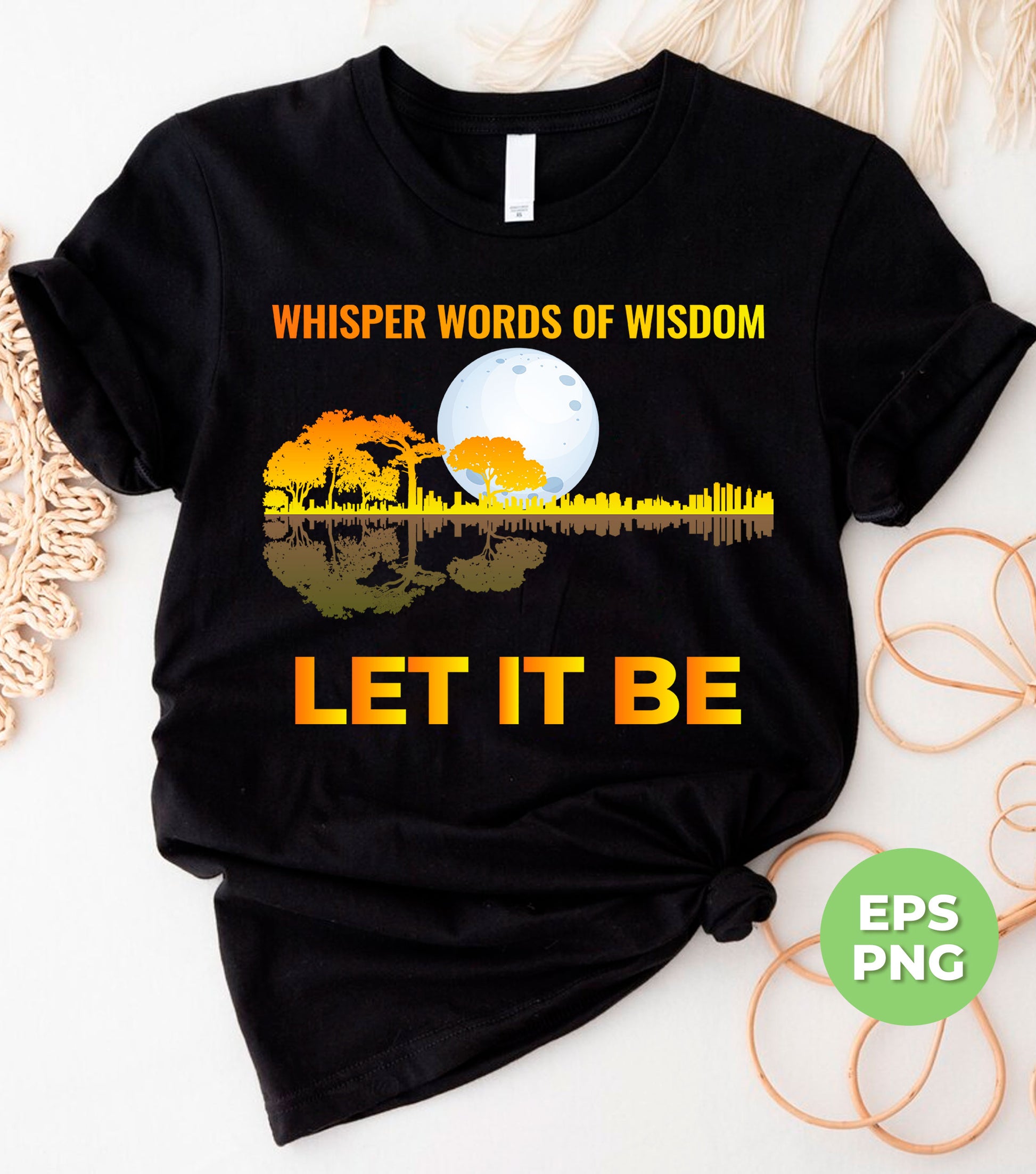 These digital files feature a stunning design of words of wisdom, letting it be, and a love guitar. Perfect for sublimation projects, they offer high-quality PNG images that will elevate any creative project. Let this design inspire and uplift you with its beautiful and meaningful message.