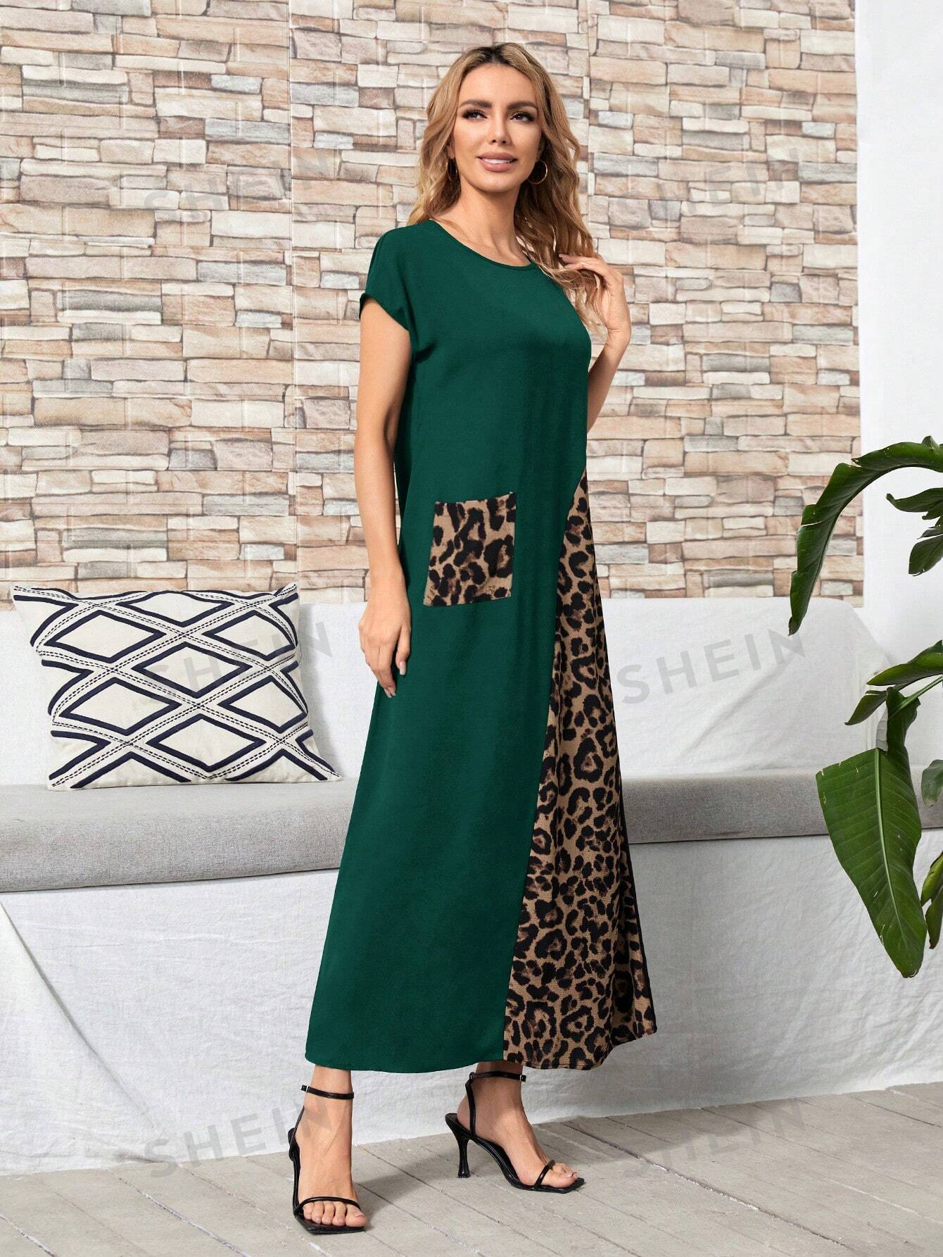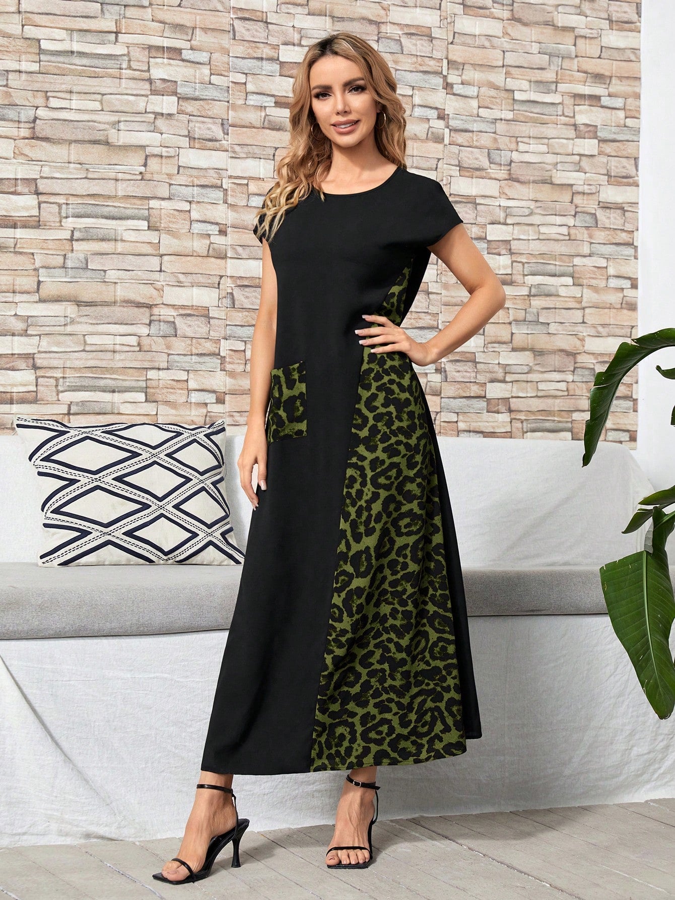 Wild and Chic: Leopard Print Pocket Patched Dress
