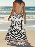 Wild Wonder Animal Print Backless Halter Neck Dress
