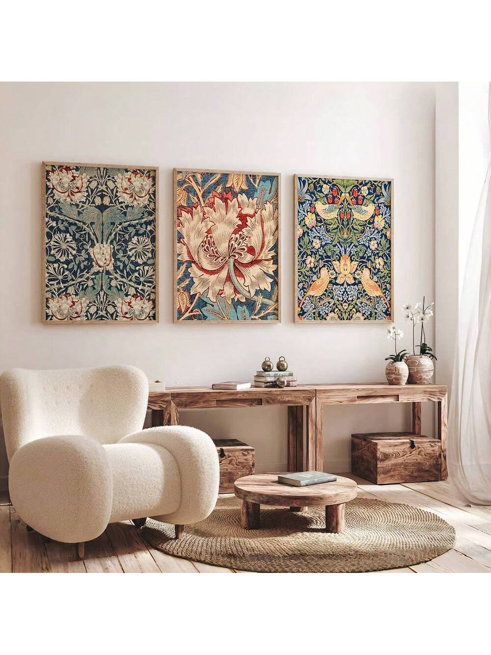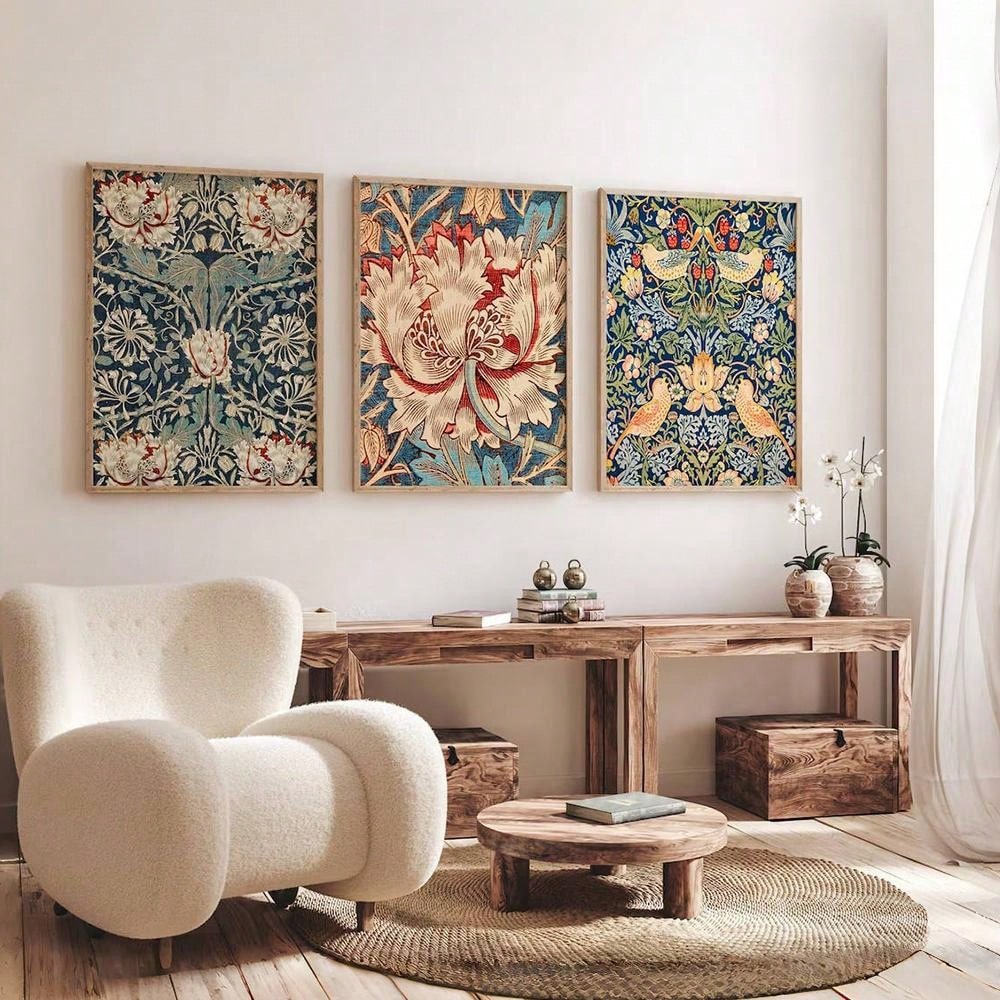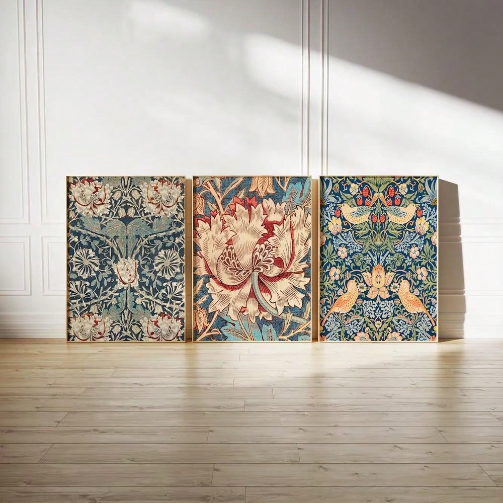 William Morris Abstract Plant Posters - Set of 3 | Flower Decorative Canvas Art for Living Room & Bedroom