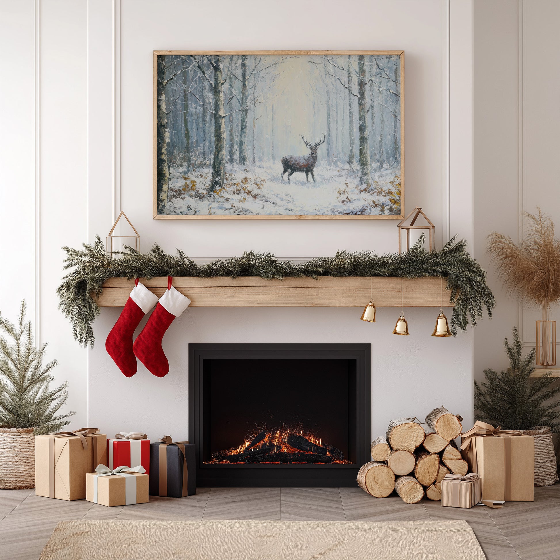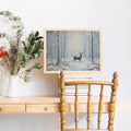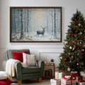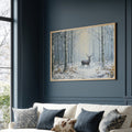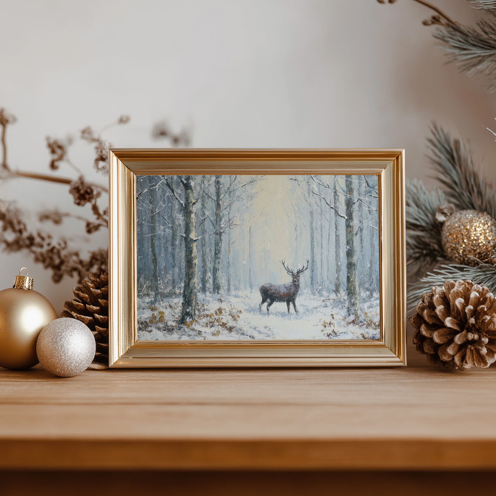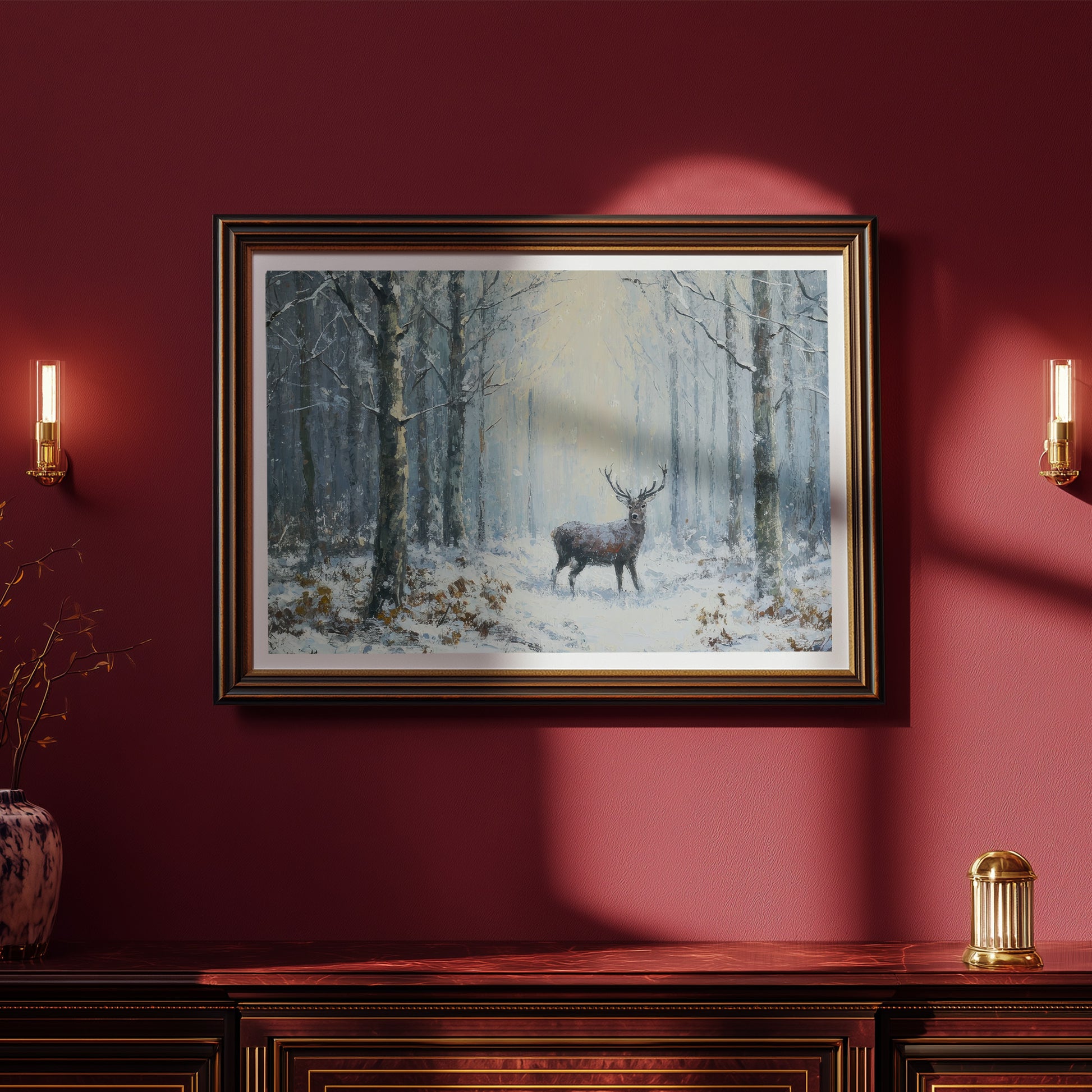 Winter Deer In Snowy Forest, Rustic Wildlife Wall Art, Nordic Nature Painting, Woodland Landscape Print
