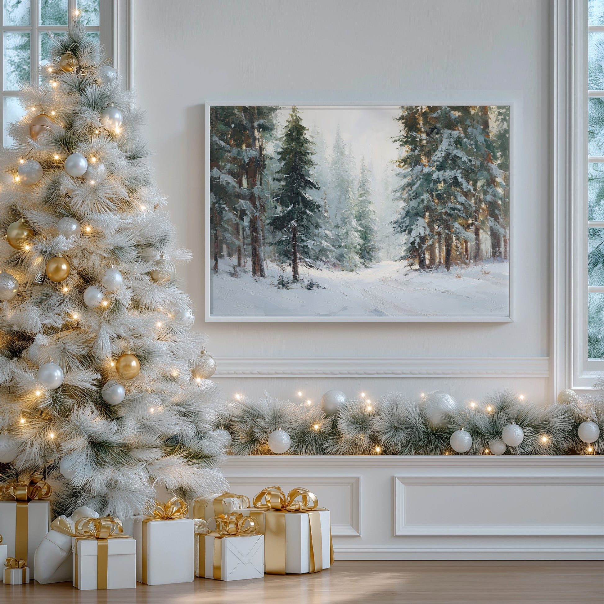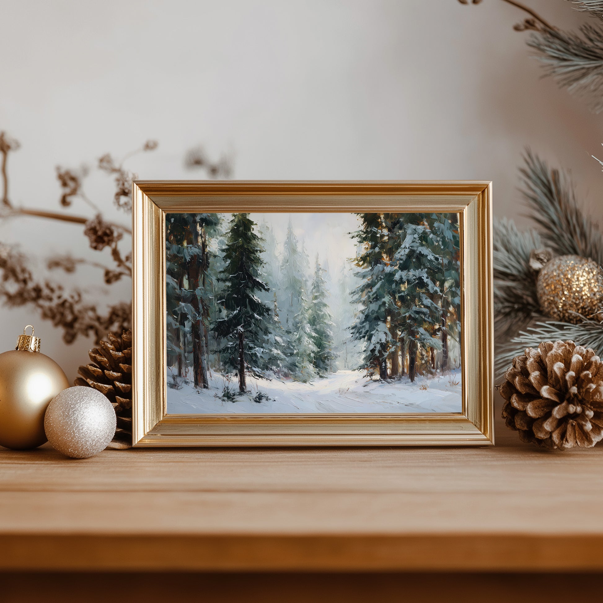 Winter Forest Landscape Painting, Snowy Pine Trees Wall Art, Serene Nature Woodland Decor
