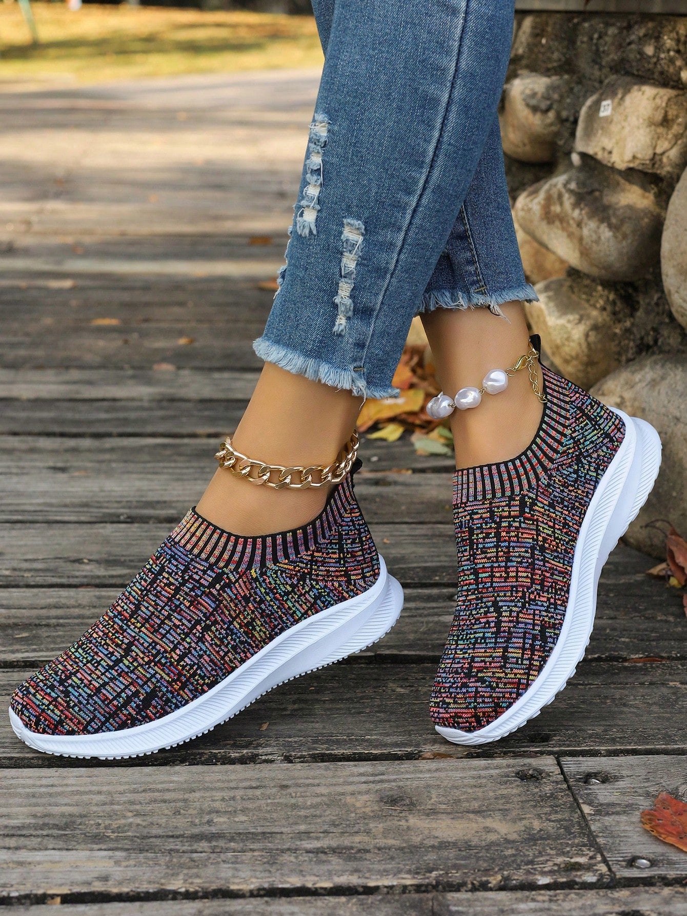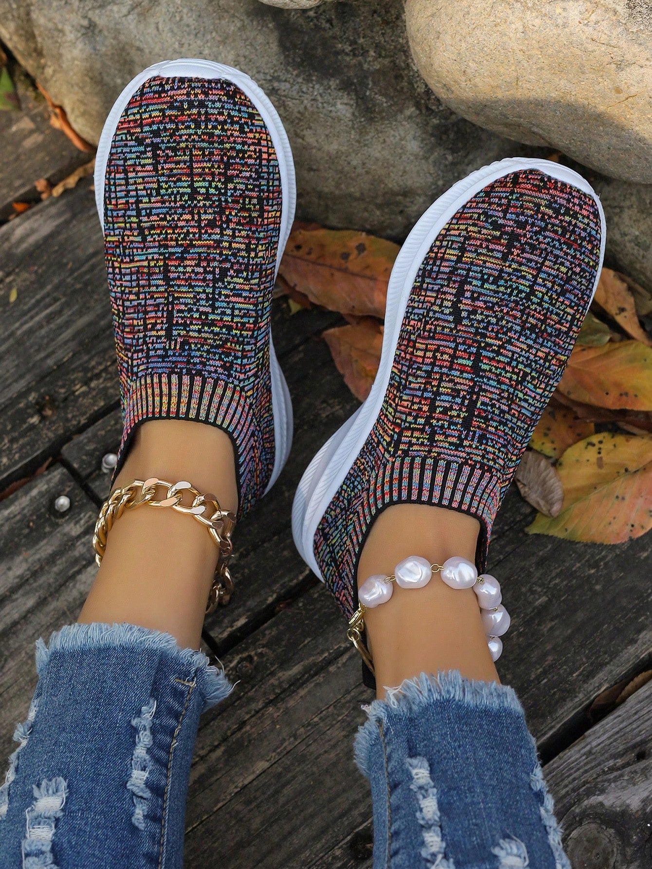 Women's Breathable Knitted Slip-On Sports Shoes - Lightweight & Comfortable Casual Sneakers
