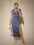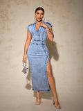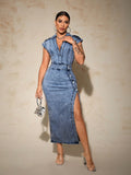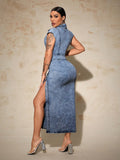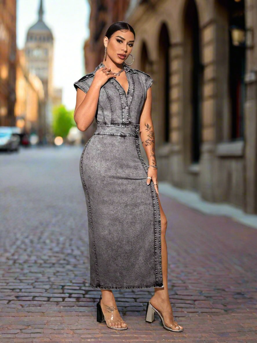 Women's Chic Slit Jeans Dress: Everyday Style Elevated