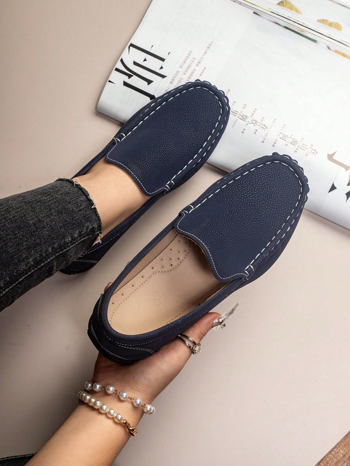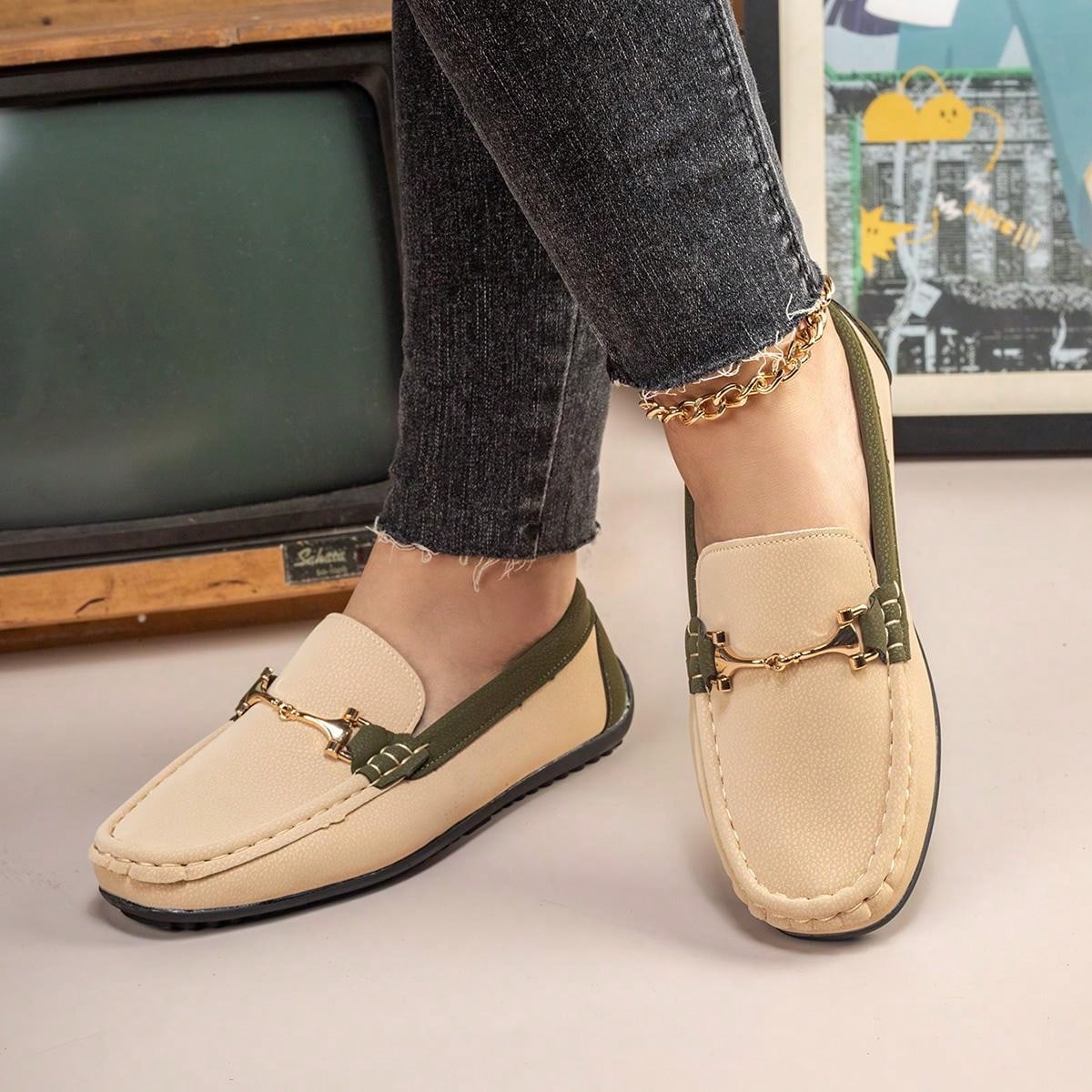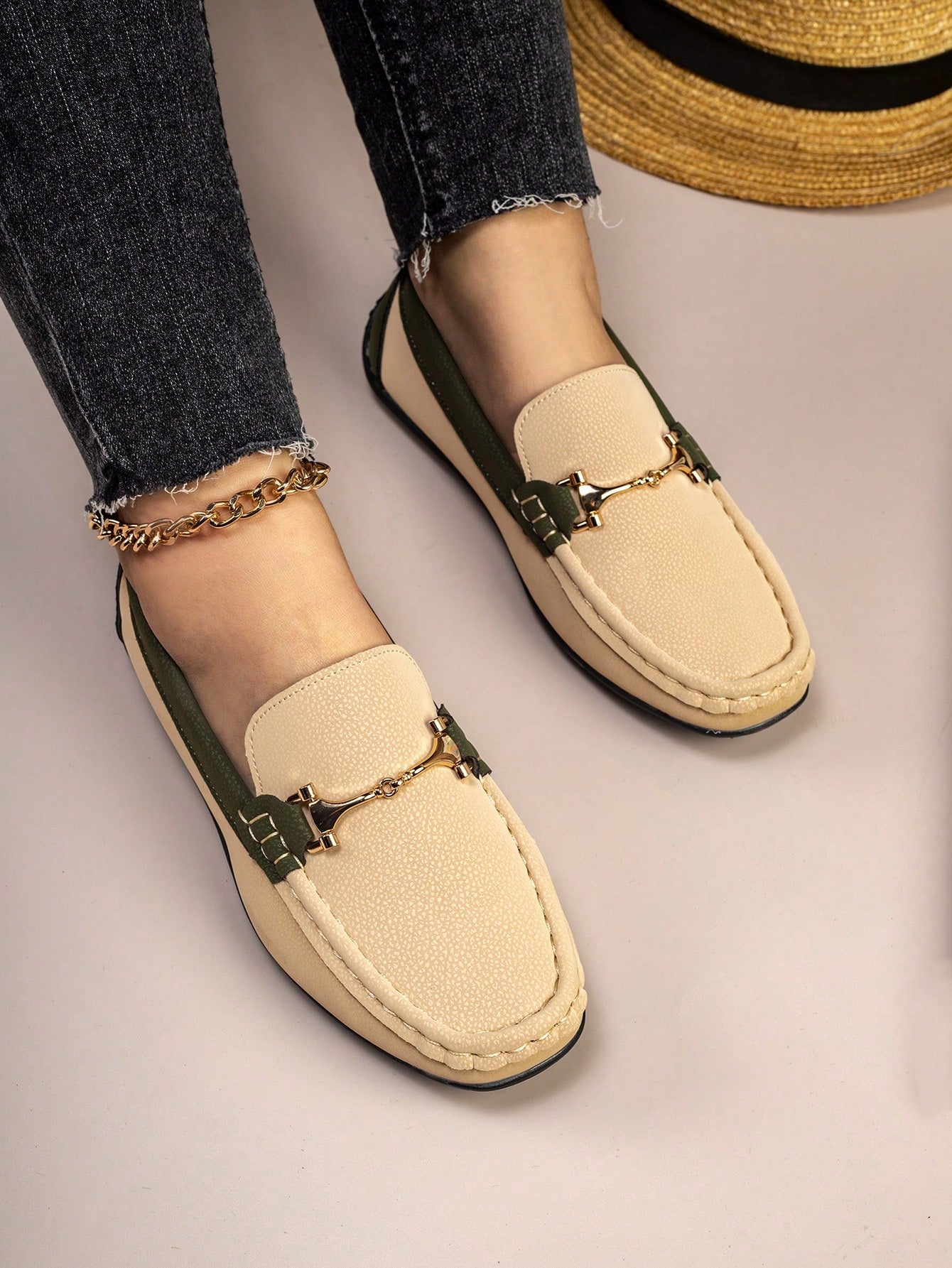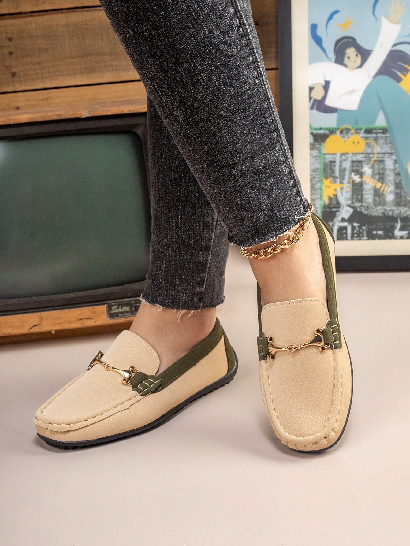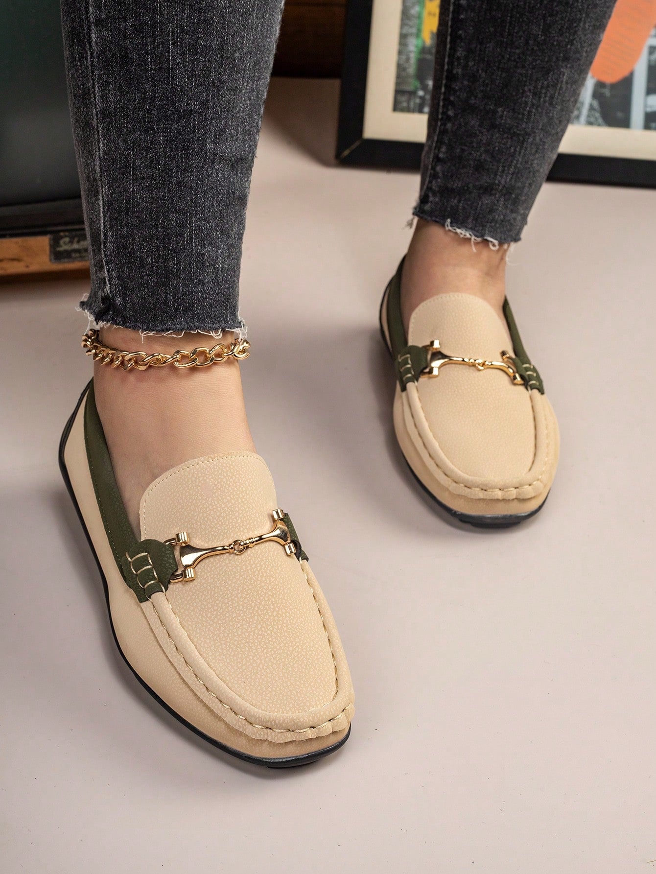 Women's Color Contrast Chain Handmade Loafers: Stylish and Breathable Outdoor Shoes