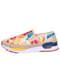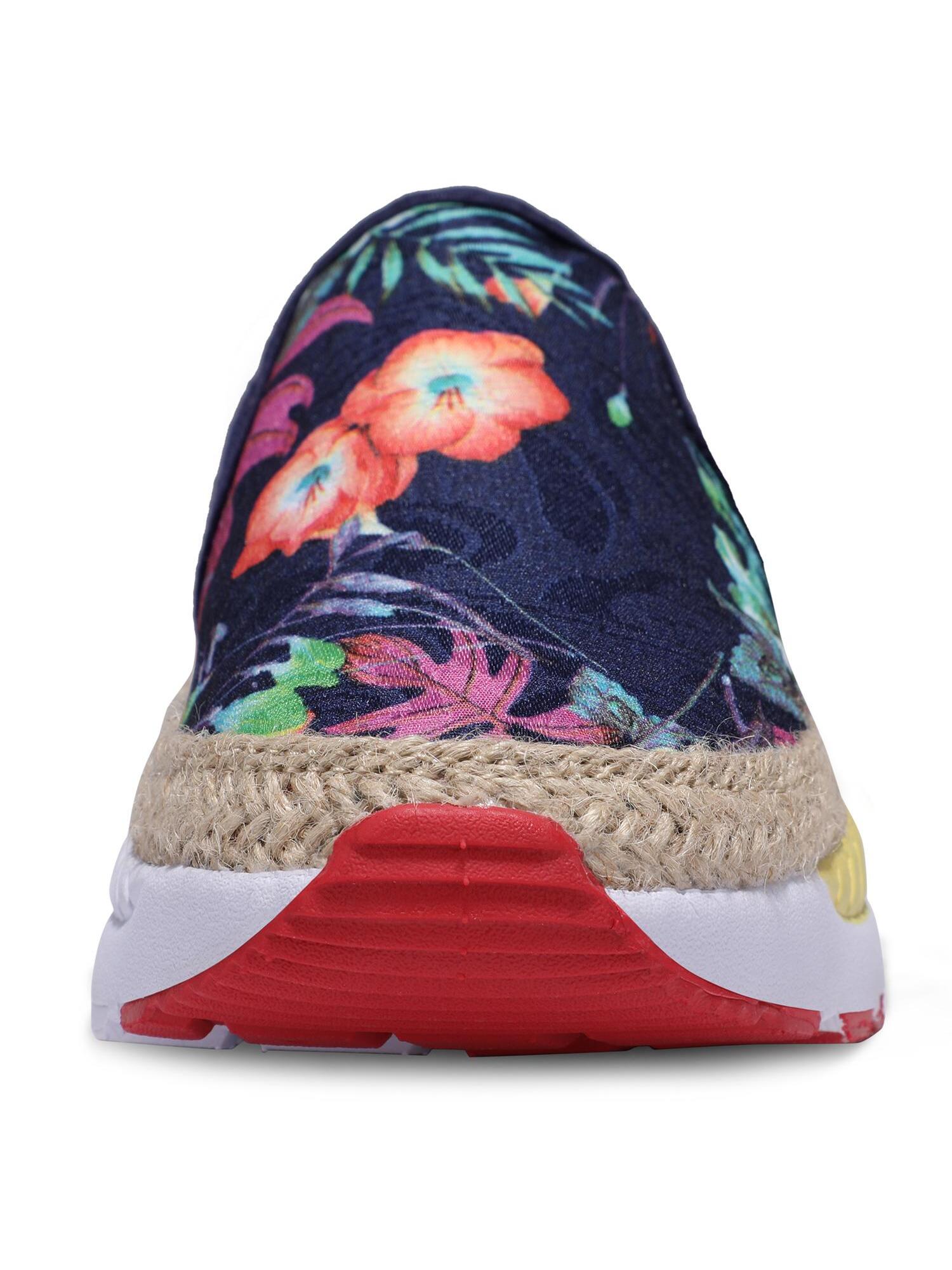 Experience style and comfort with our Women's Floral Embroidered Slip-On Loafers. These casual sneakers feature vibrant floral embroidery, making them a fashionable addition to any outfit. Slip them on and enjoy the ease of a comfortable fit while adding an eye-catching touch to your look.