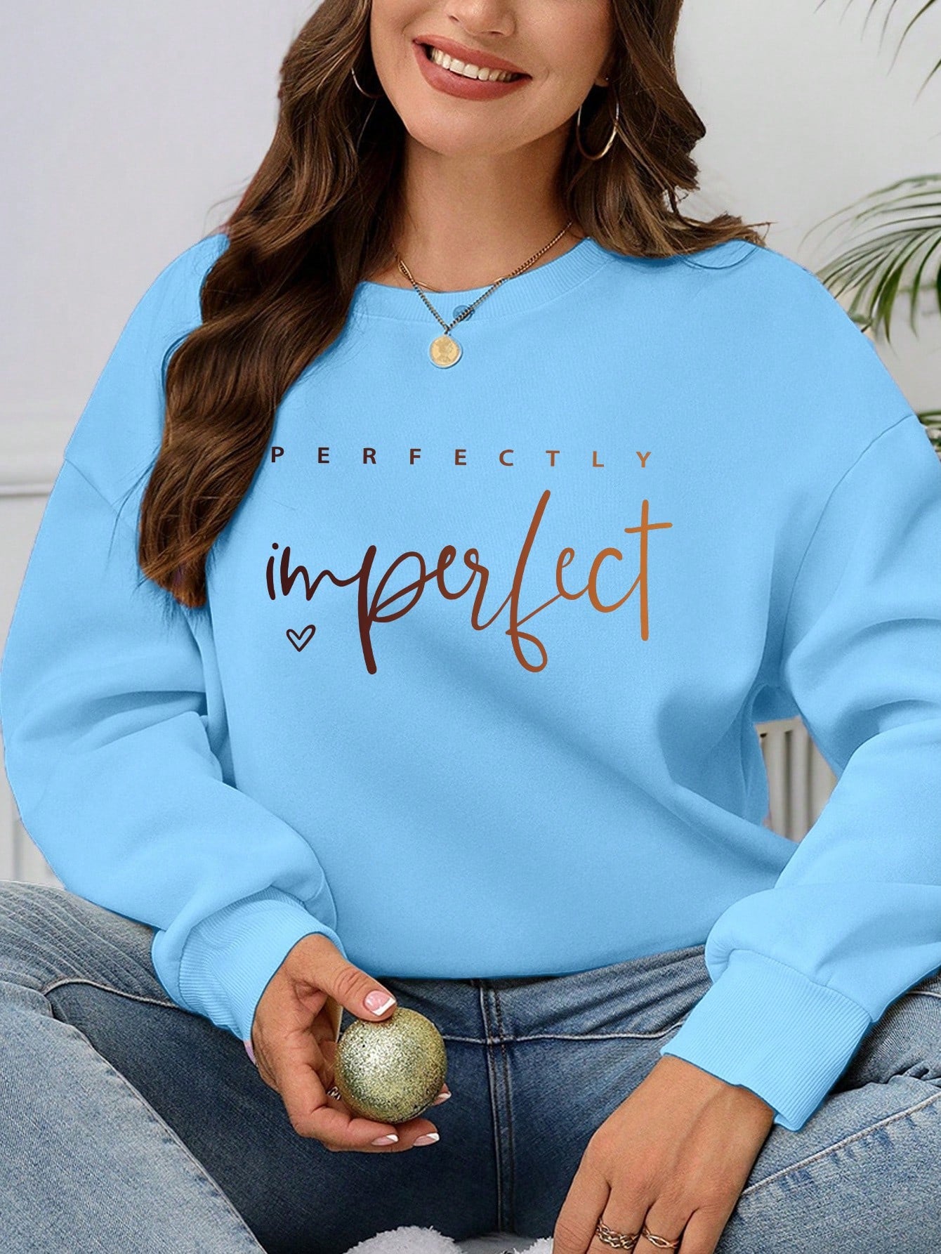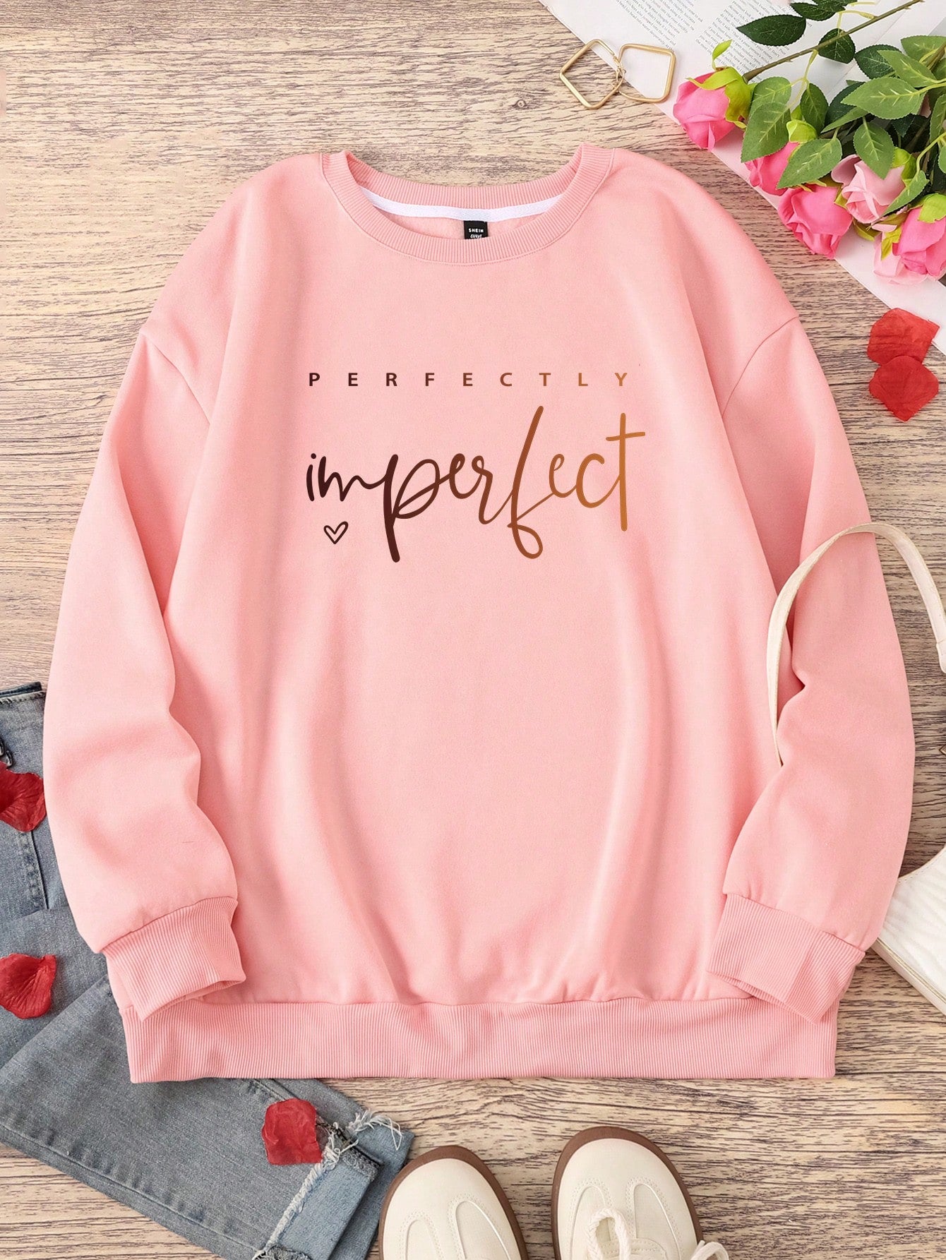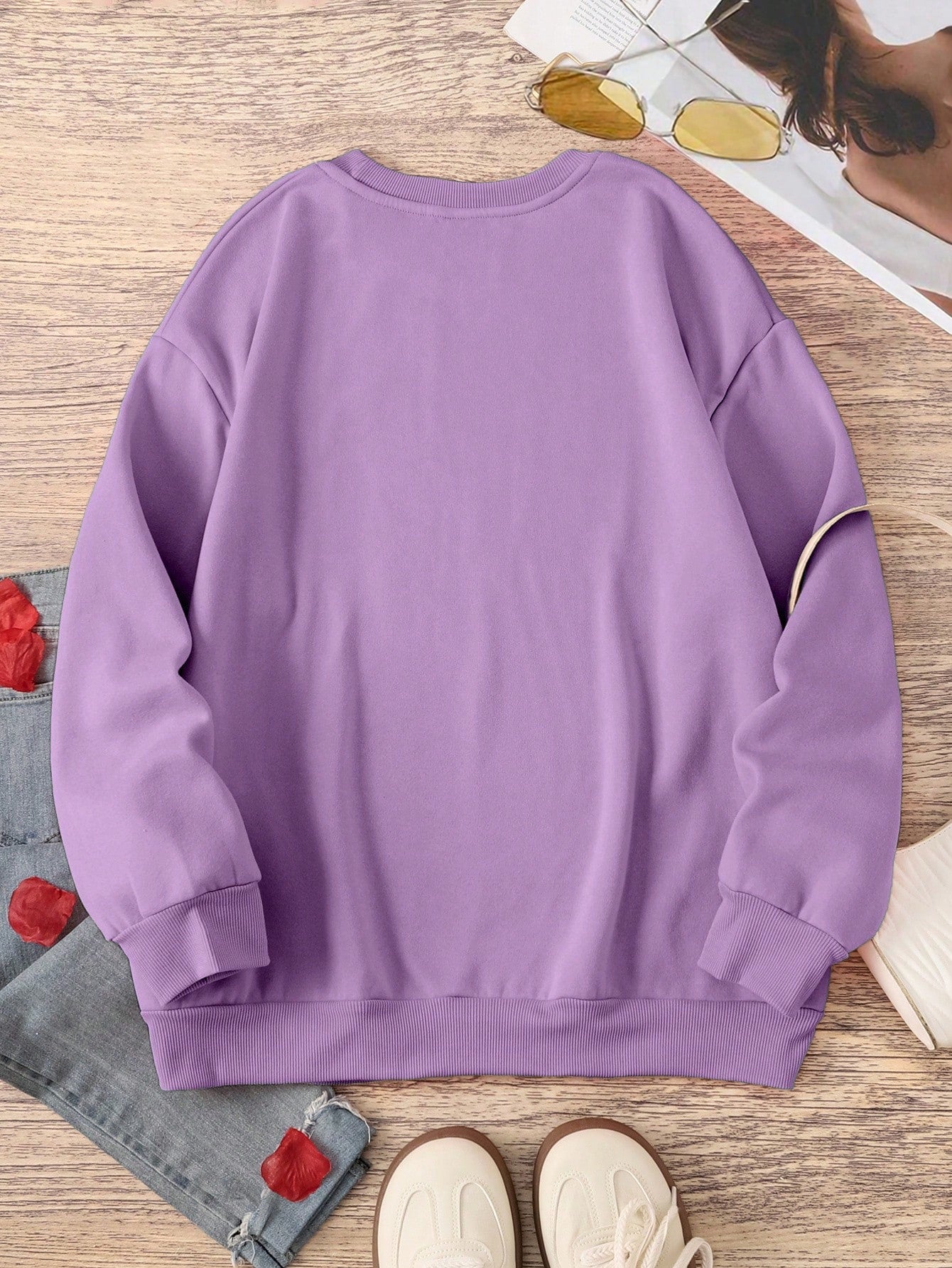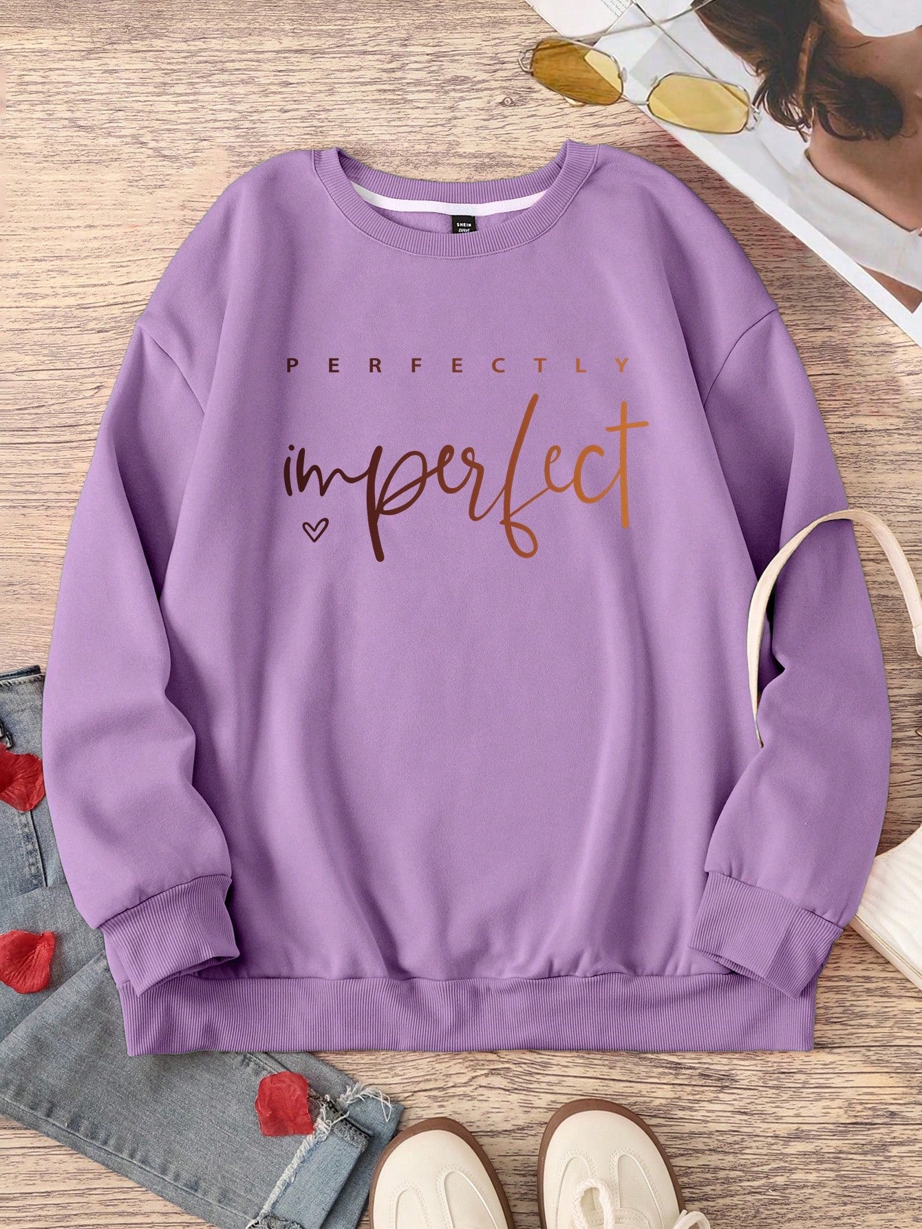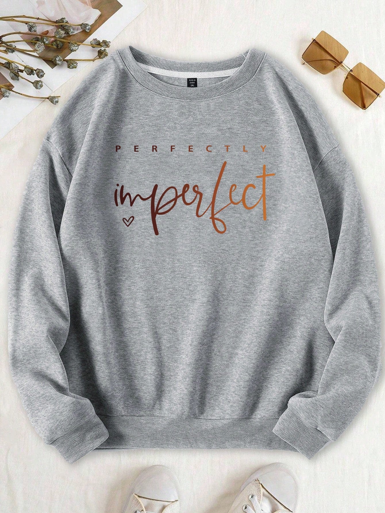 Women's Large Slogan Graphic Hoodie - Cozy Round Neck Sweatshirt