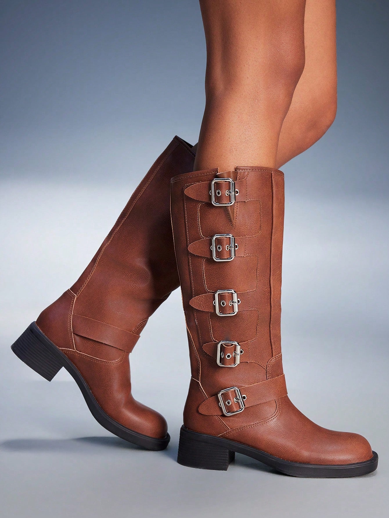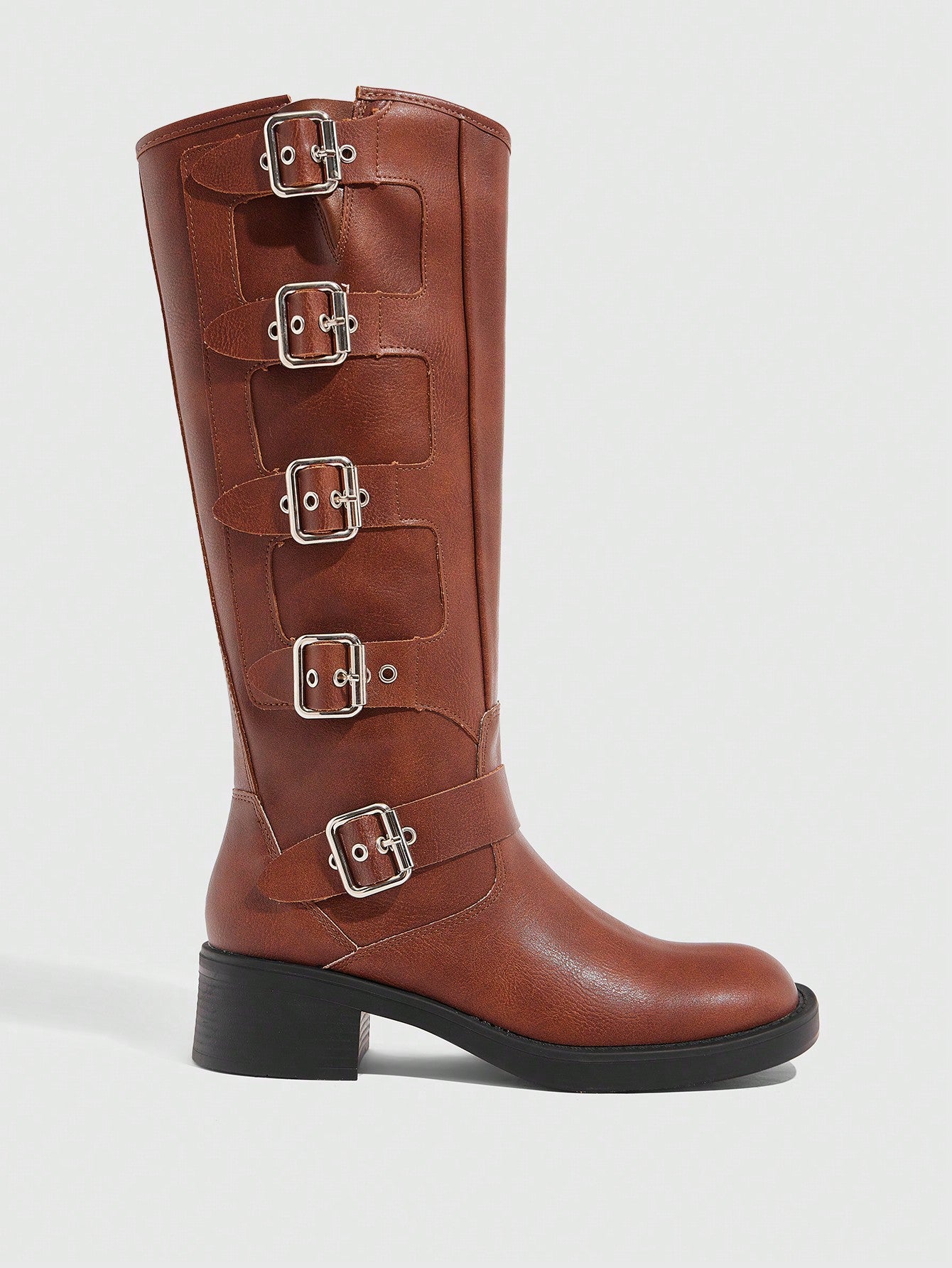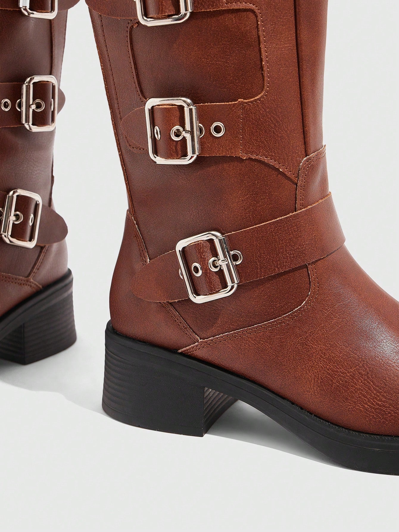 Women's Solid Color Button Mid-Calf Boots - Perfect for Autumn & Winter Celebrations!