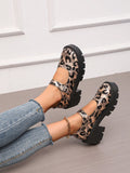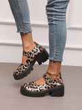 Women's Stylish Chunky Heel Mary Jane Flats - Printed Slip-Ons with Thick Sole