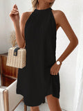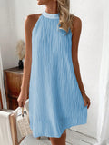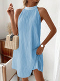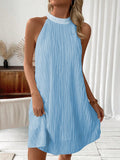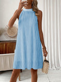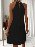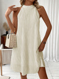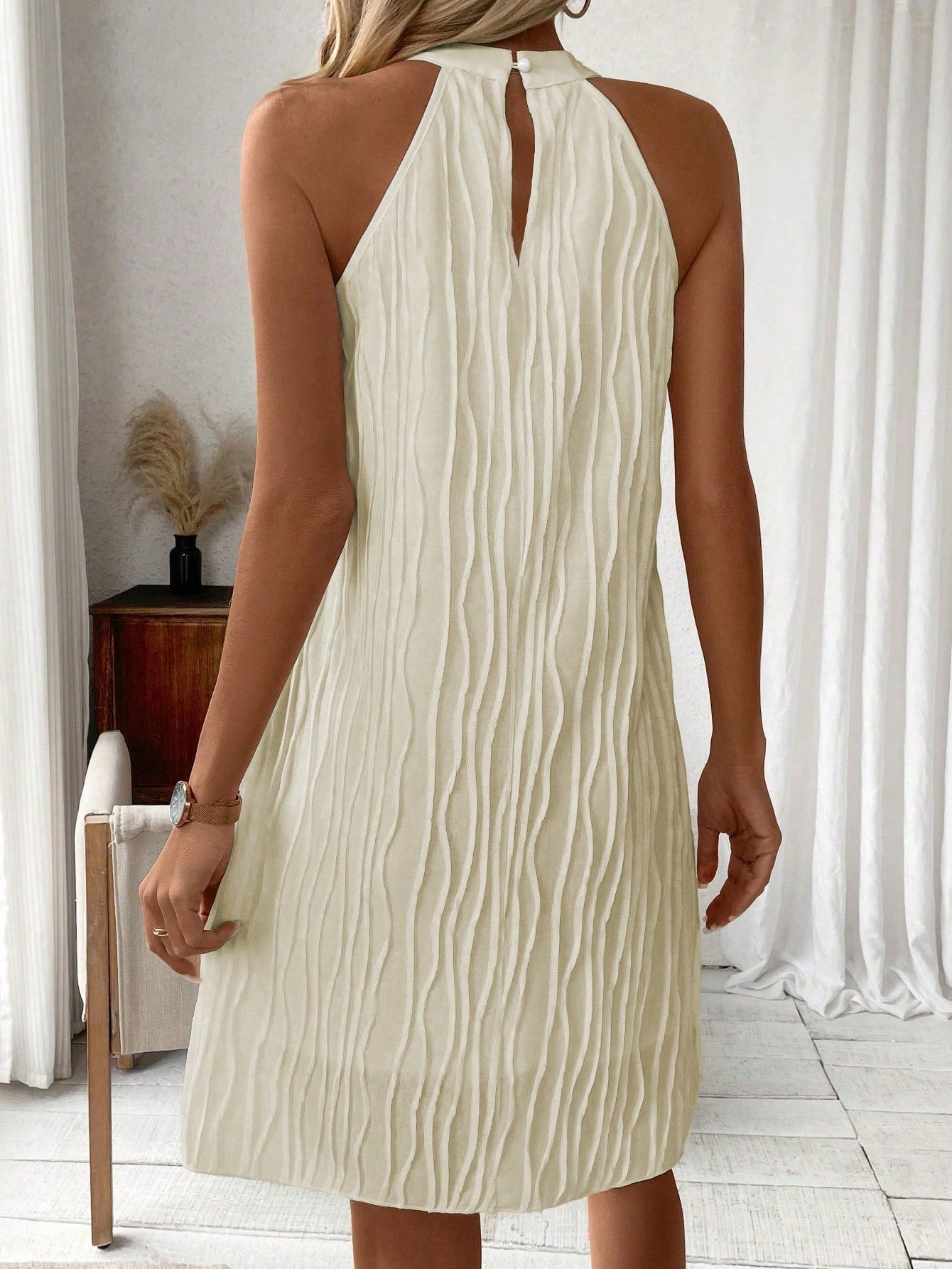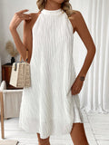Women's Textured Midi Dress: Effortlessly Elegant Sleeveless Halter Style