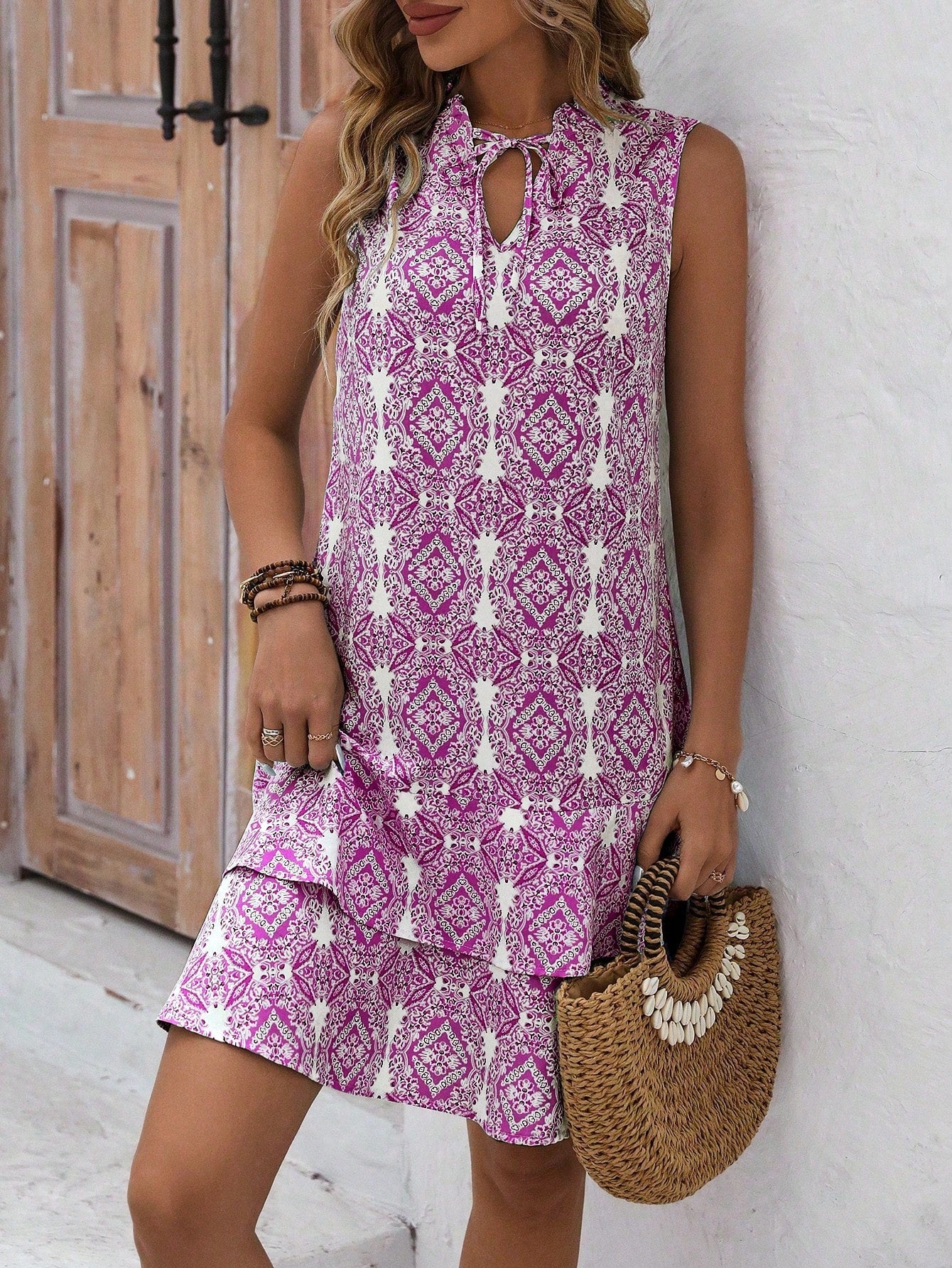 Women's Vacation Style Irregular Floral Printed Sleeveless Dress: Your Perfect Summer Getaway Outfit!